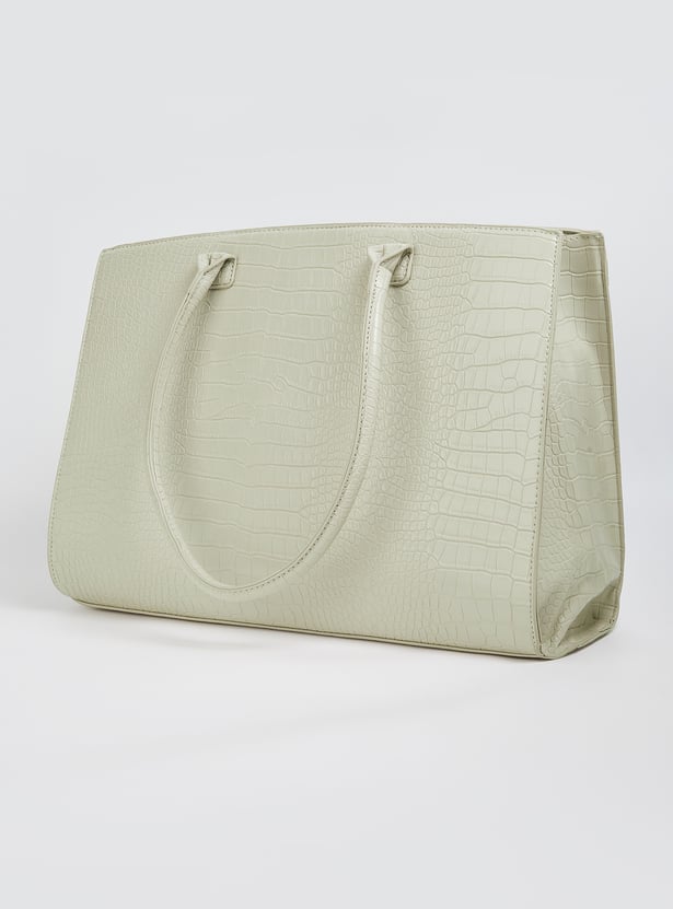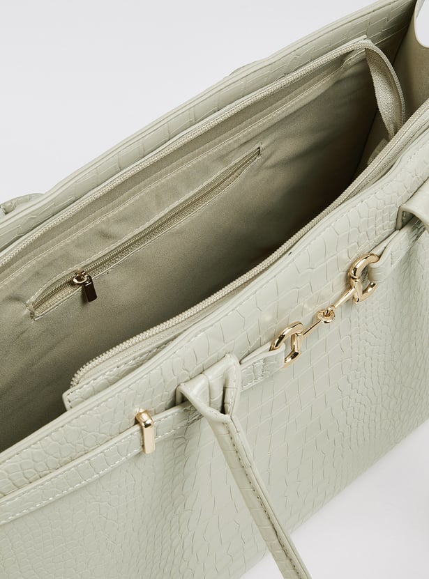 Add a touch of sophistication with this textured shoulder bag, featuring twin handles and a secure zip closure. Spacious and stylish, it’s ideal for daily use and on-the-go essentials.