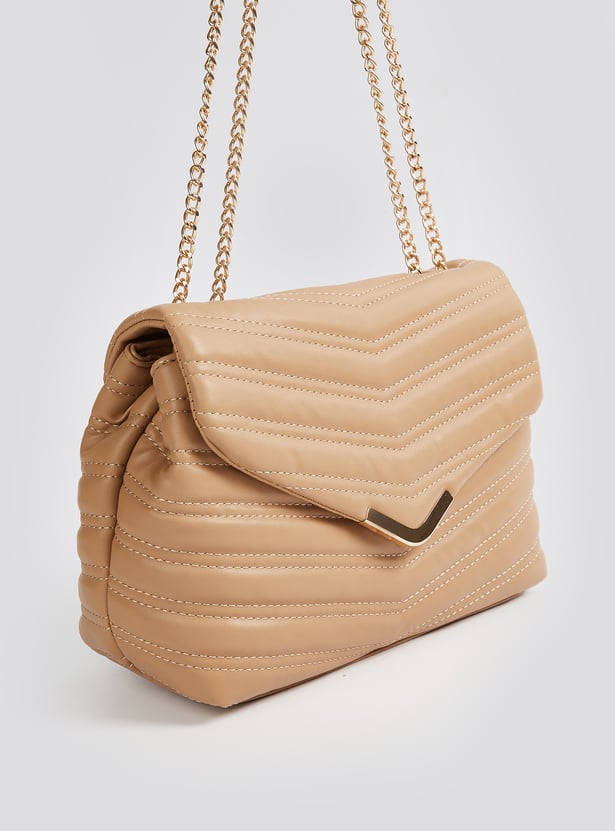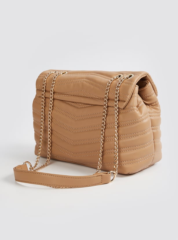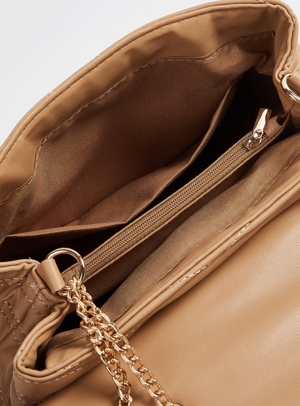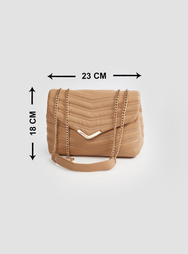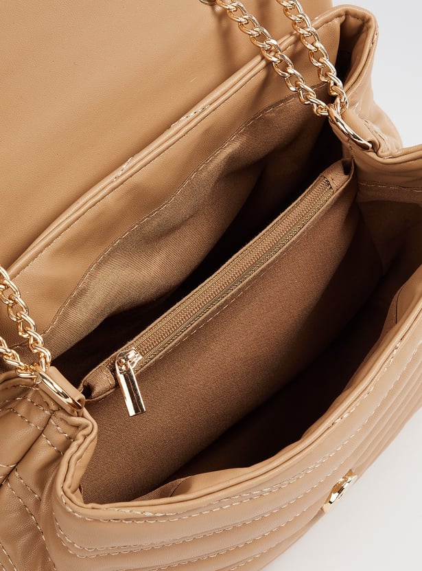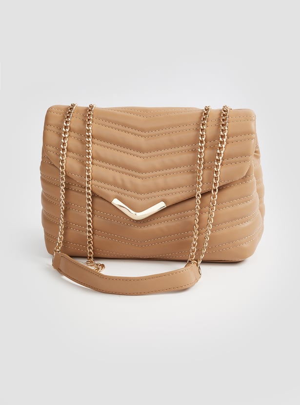 Elevate your accessory game with this textured sling bag. Featuring a flap with magnetic closure, it opens to reveal 2 inner compartments and an inner zip pocket for organized storage.