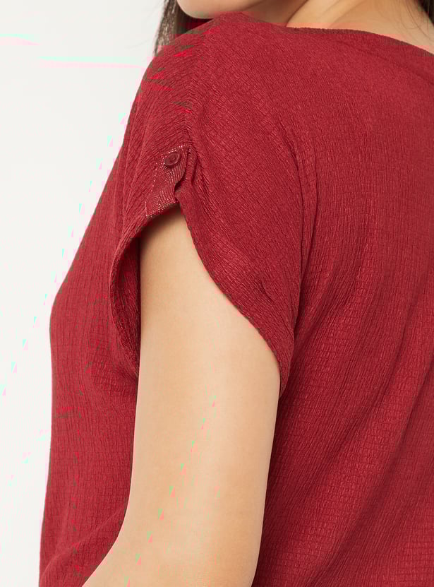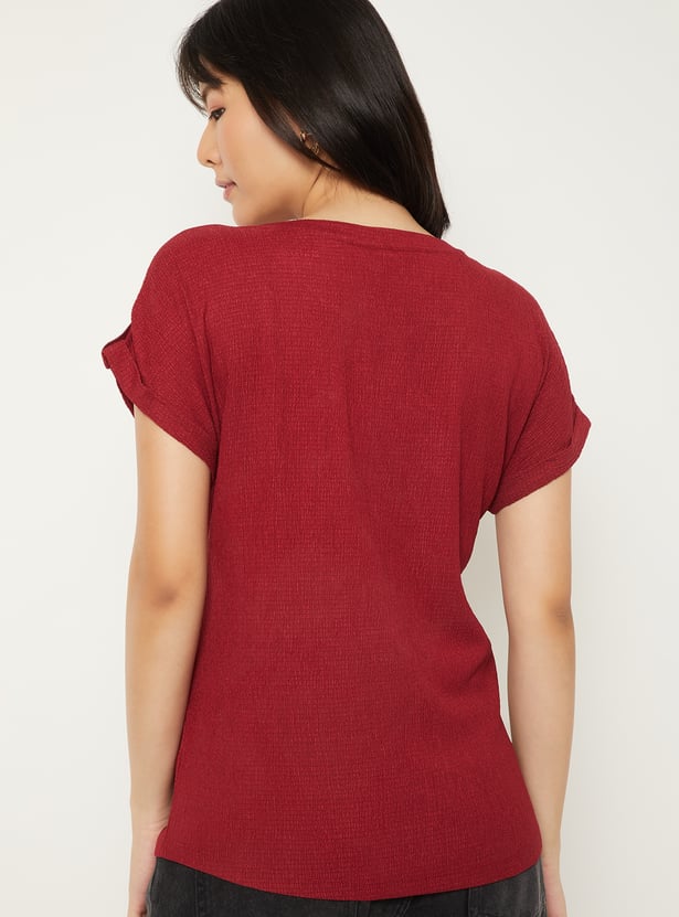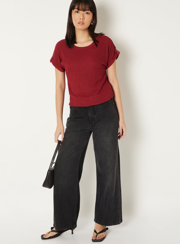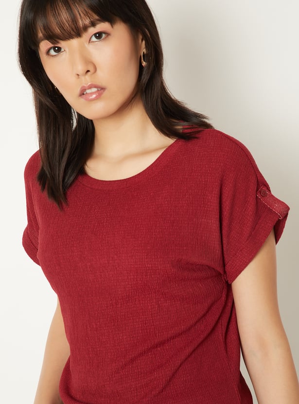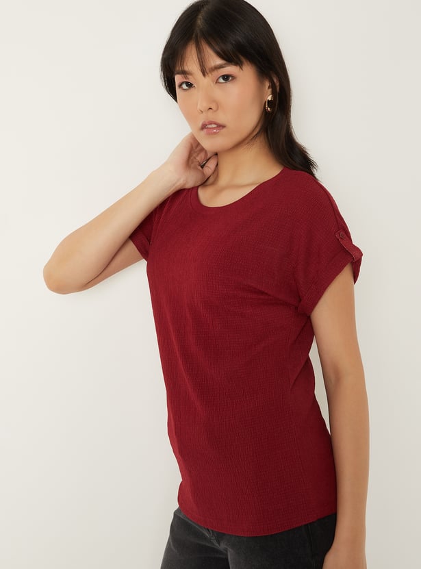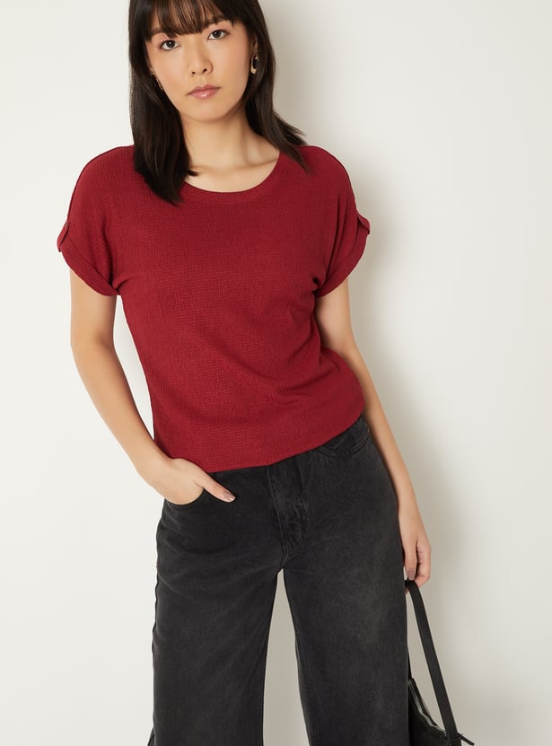 Keep it casual yet stylish with this textured t-shirt. Featuring a round neck and half sleeves, it offers everyday comfort while the design adds a trendy edge to your look. Model Size :