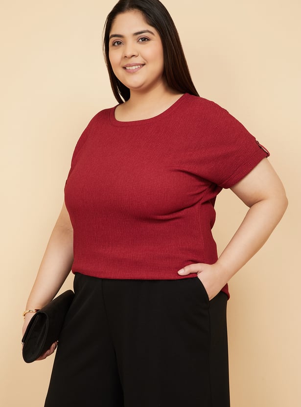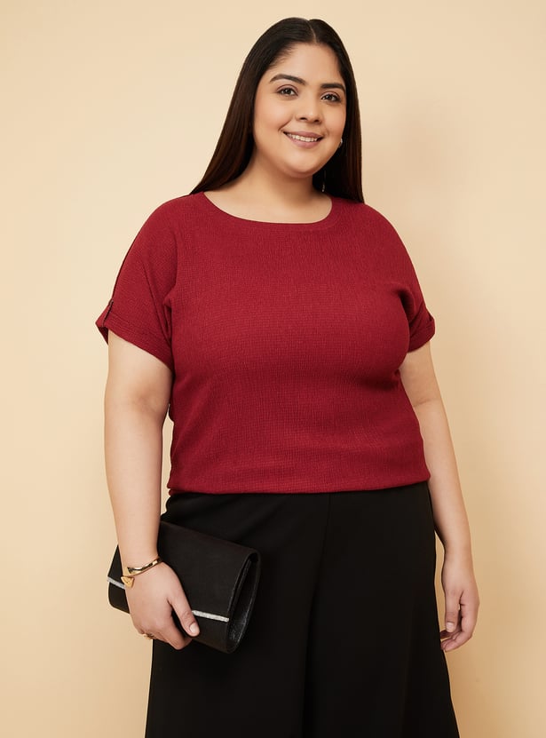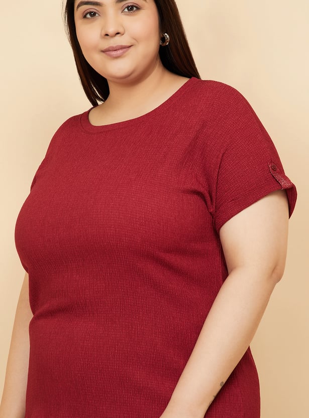 Keep it casual yet stylish with this textured t-shirt. Featuring a round neck and half sleeves, it offers everyday comfort while the design adds a trendy edge to your look. Model Size :