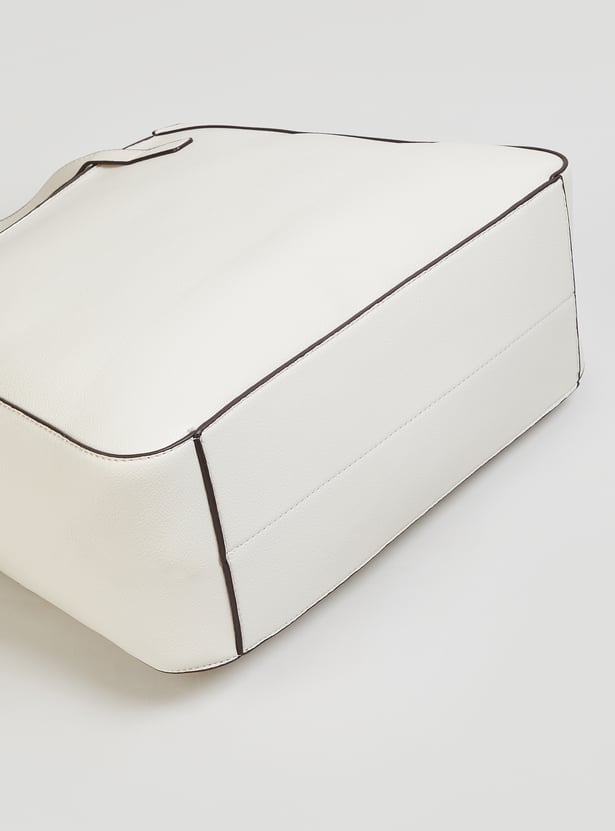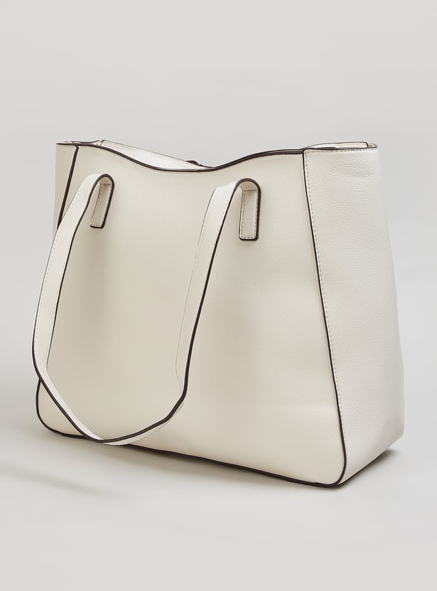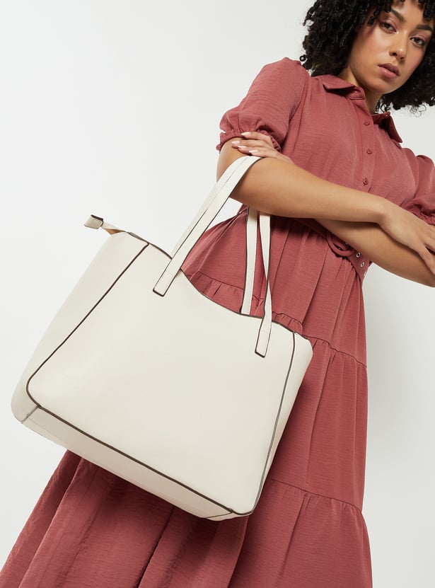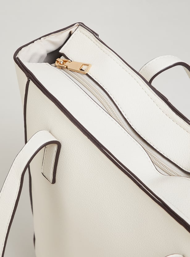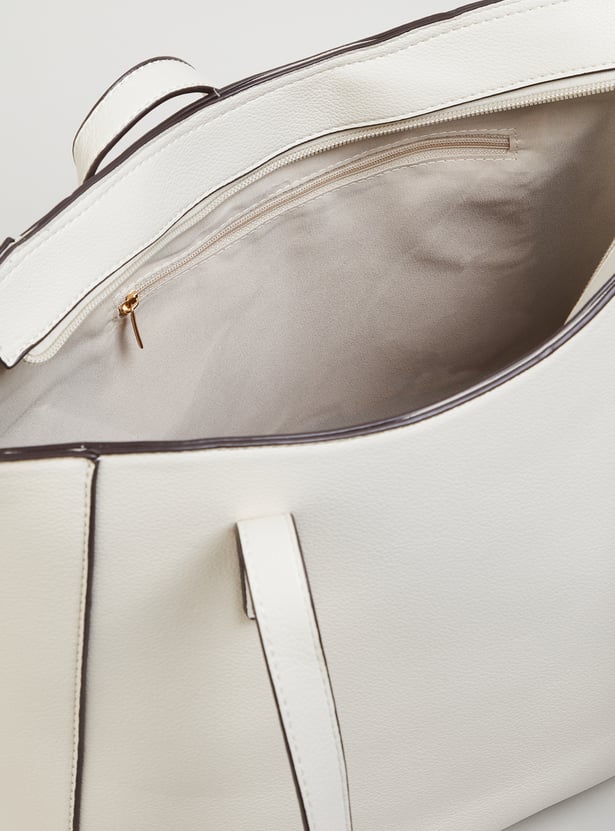 Stay stylish and organized with this textured tote bag, featuring twin handles and a secure zip closure. Spacious and versatile, it's perfect for daily commutes or casual outings.