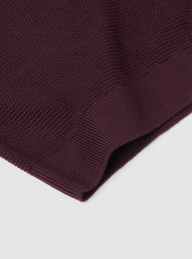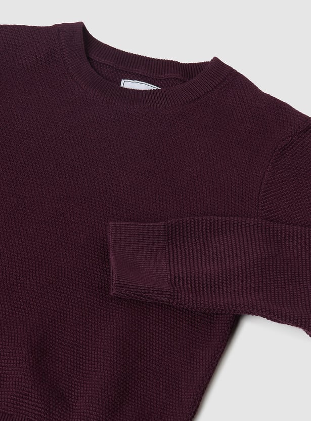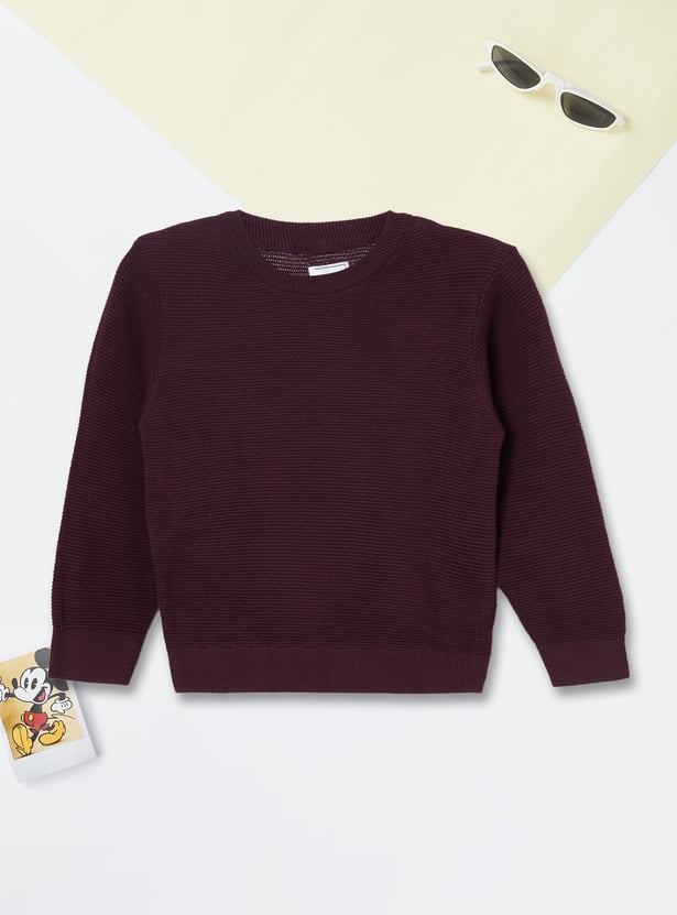 Stay cozy and classic with this knit sweater, featuring a crew neck and full sleeves. Finished with a ribbed hem for a snug and polished look.