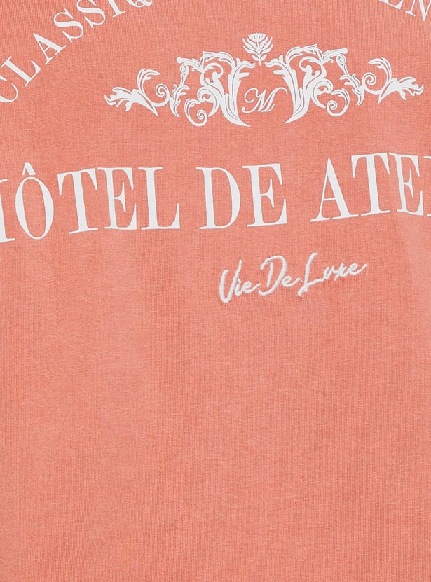Add a bold touch to your casual style with this printed boxy fit T-shirt. Featuring a crew neck, embroidered detail, and half sleeves, it offers relaxed comfort with standout appeal.