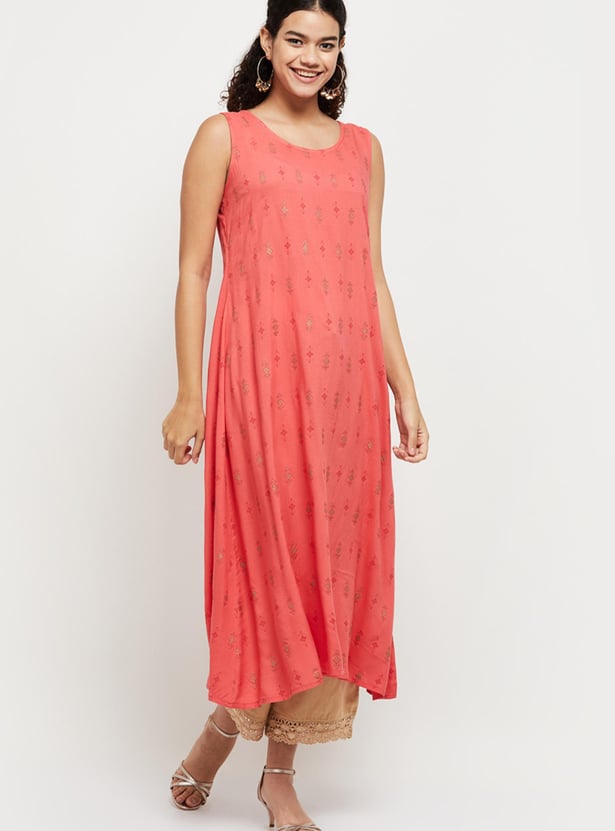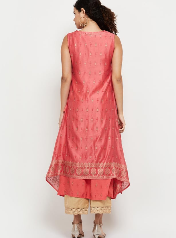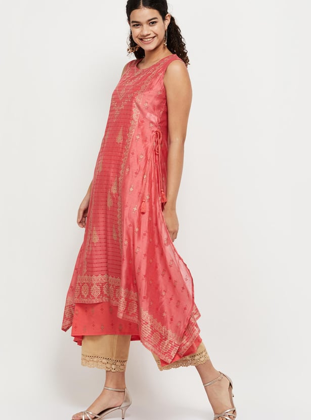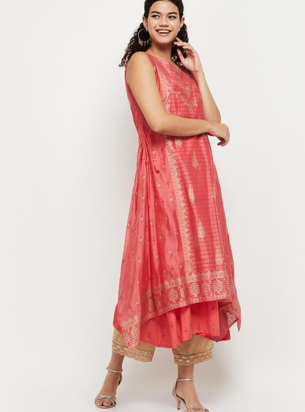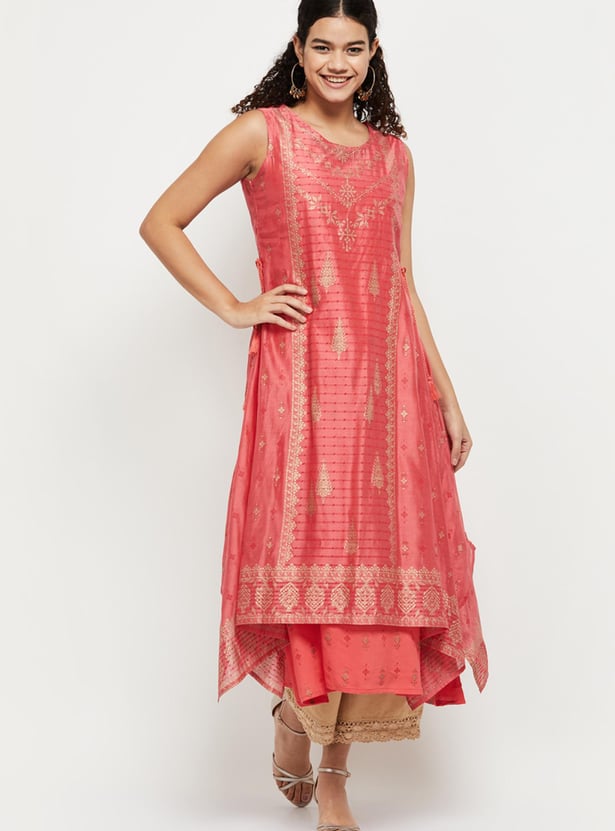 Women Printed Sleeveless Layered Asymmetric Kurta