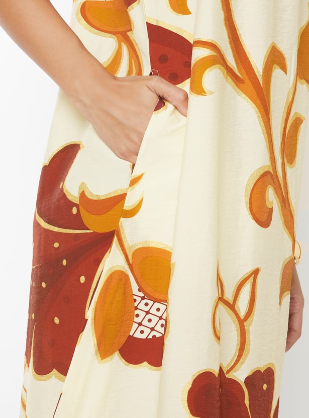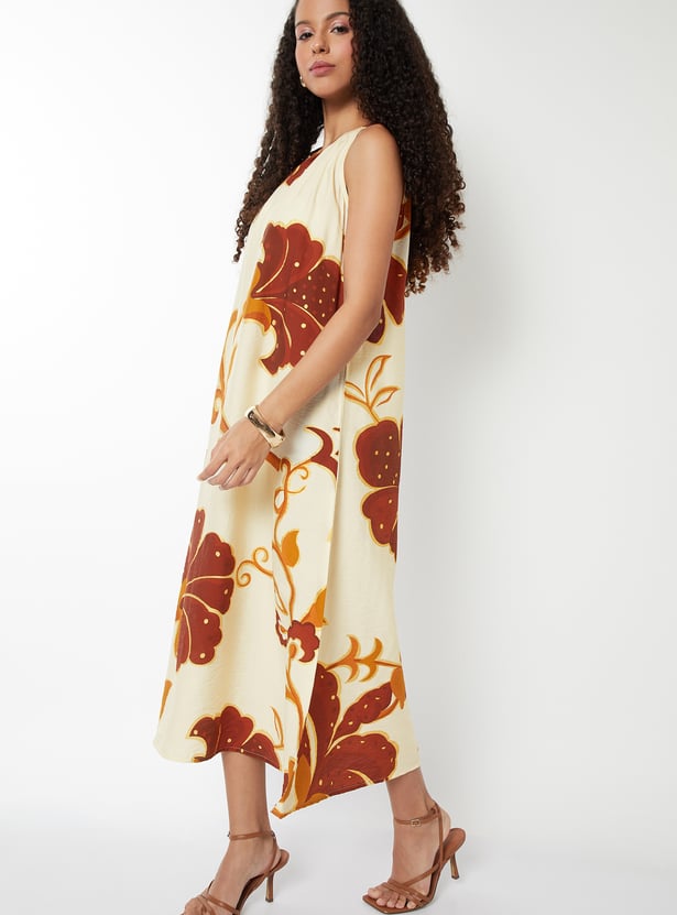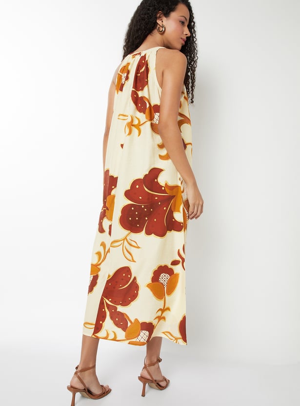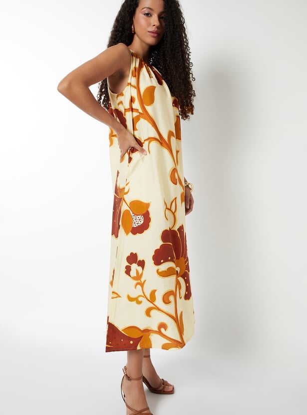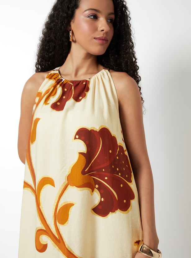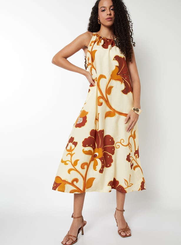 Turn up the charm with this floral print A-line dress, featuring a stylish halter neck, sleeveless design, and a flattering midi length. The breezy silhouette and vibrant floral print make it perfect for sunny days and special occasions alike.