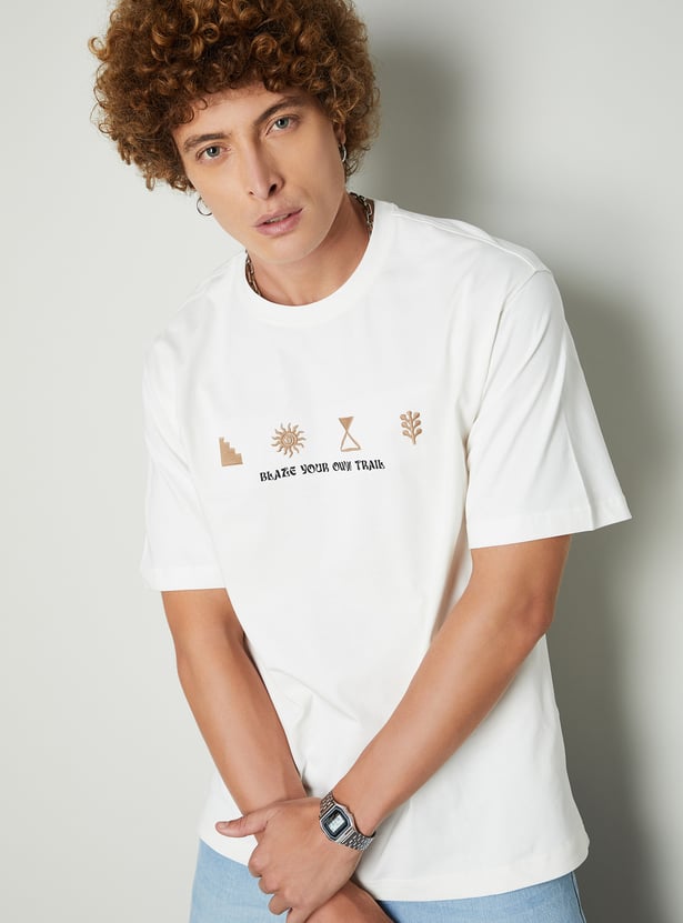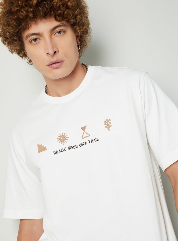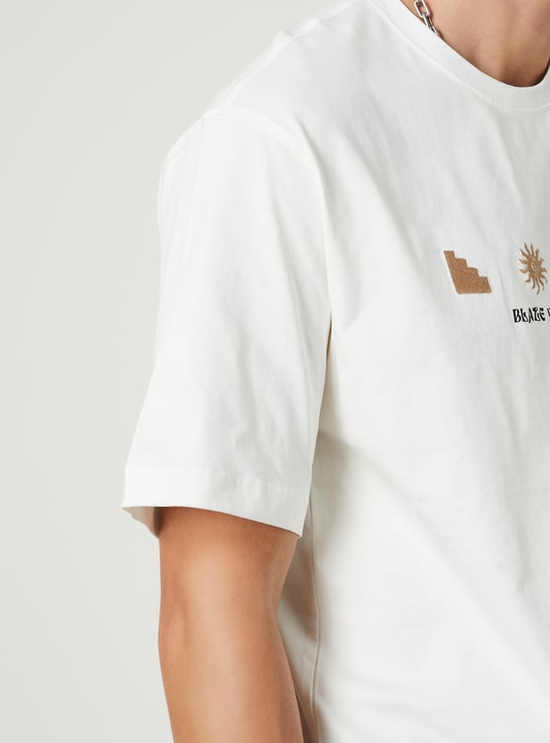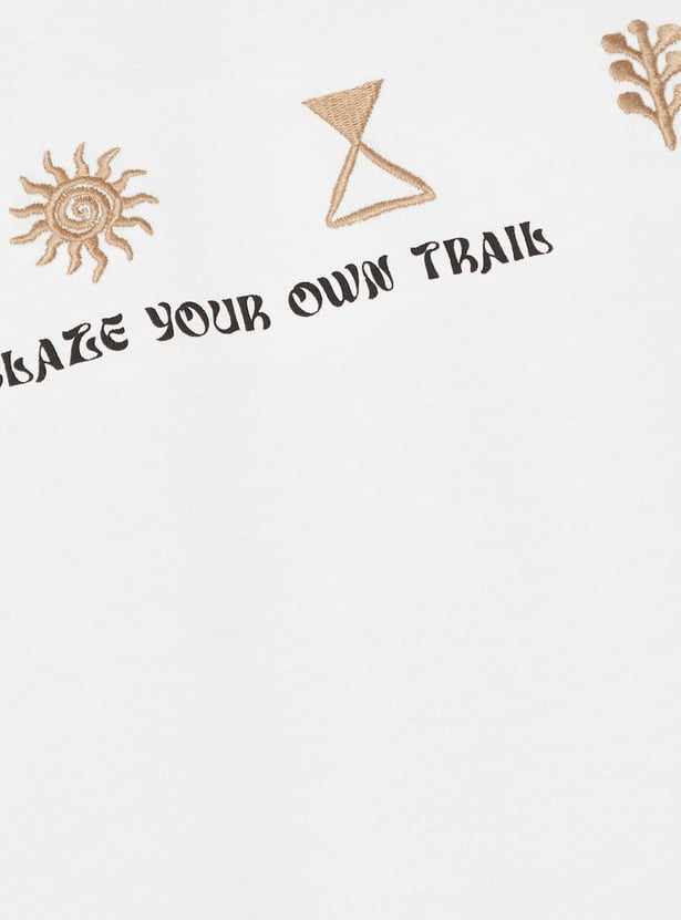 This embroidered t-shirt blends casual comfort with subtle detail, featuring a classic crew neck and half sleeves. The delicate embroidery adds a stylish twist to an everyday essential, making it perfect for easy, elevated looks.