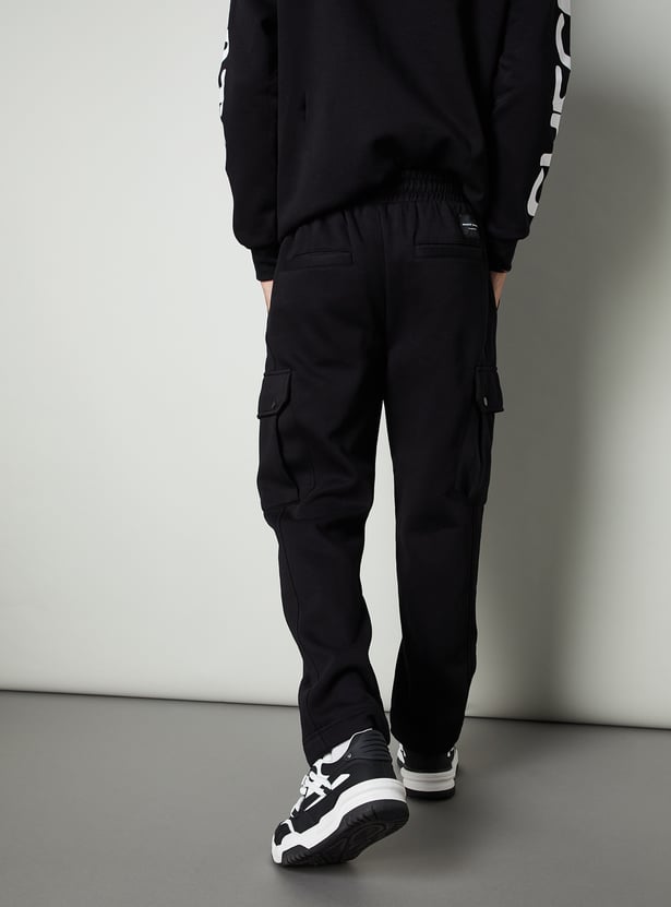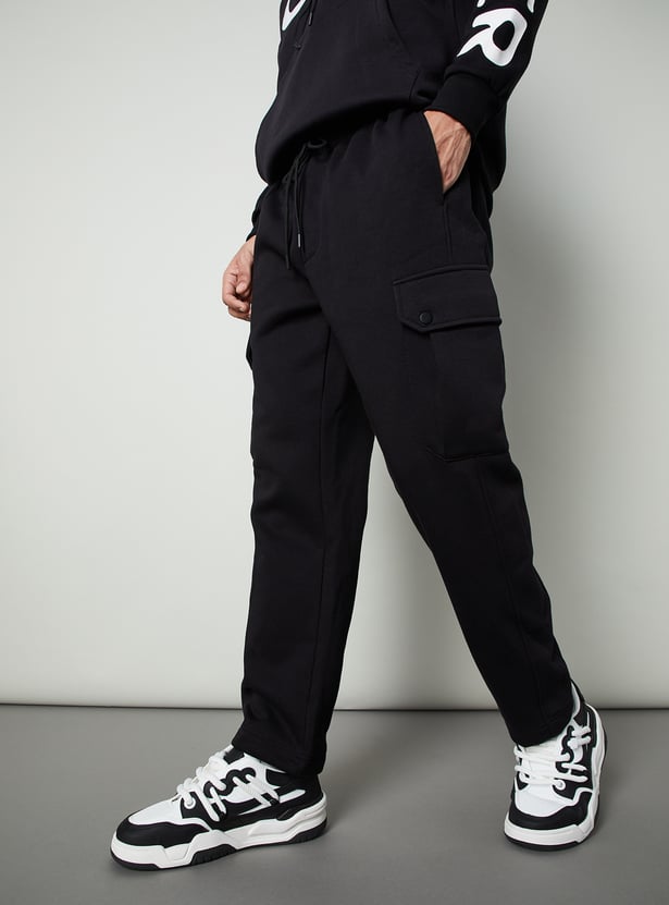 Men Relaxed Fit Solid Cargos