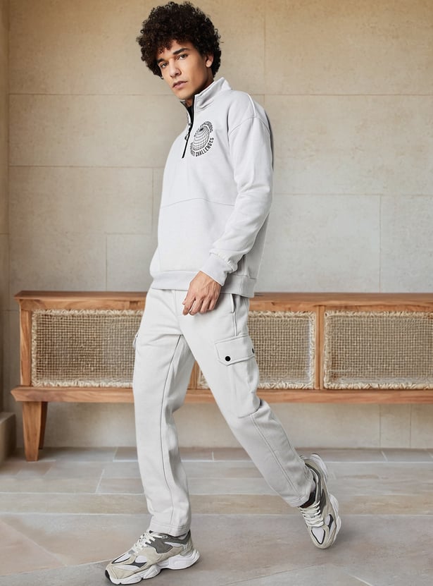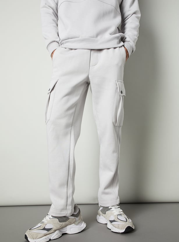 Men Relaxed Fit Solid Cargos