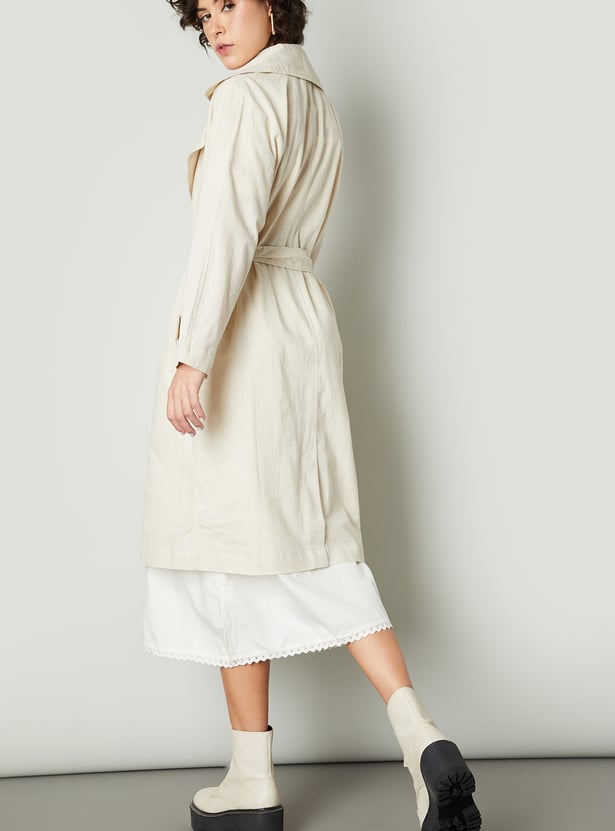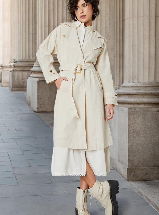 Classic style and modern comfort make this trench coat your go-to for effortless chic. It features a notched lapel and full sleeves with adjustable tabs at the cuffs, giving it a sleek, tailored look. The fabric belt cinches the waist for a flattering silhouette, while the waist pockets add style and practicality.