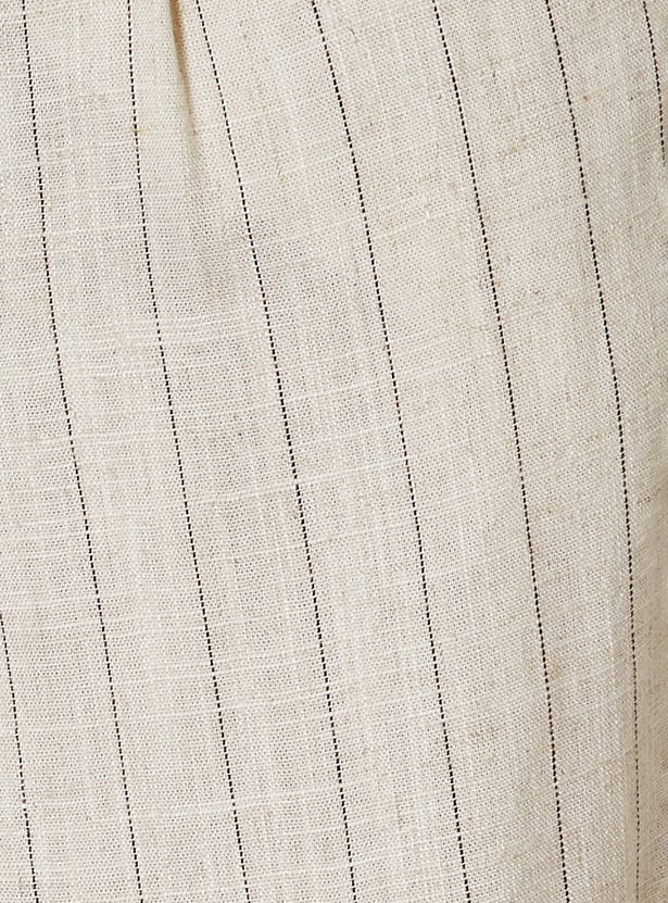 Designed for effortless polish, these wide-leg trousers feature a sleek hook-and-bar closure with a zip fly and side pockets for practical elegance. The fluid silhouette adds movement and ease, while the striped design makes it a versatile base for both workwear and weekend edits.