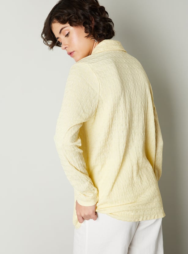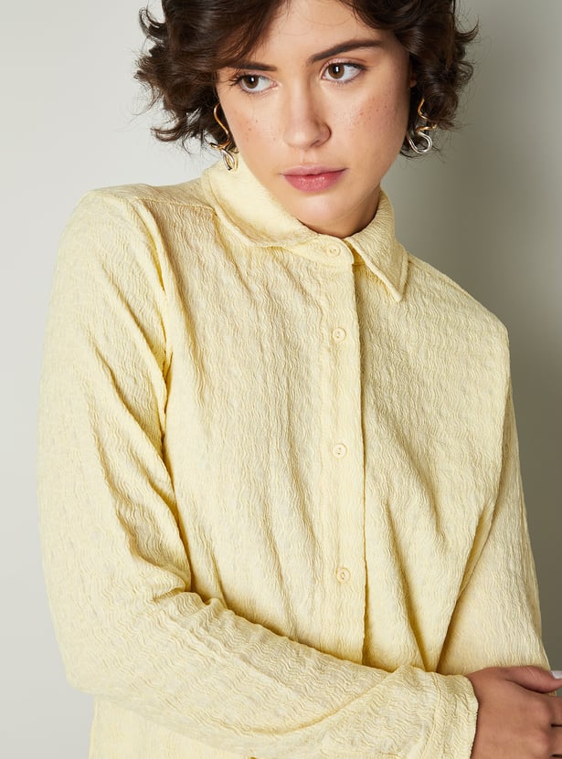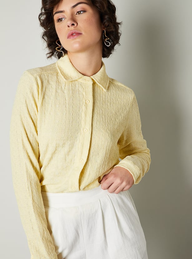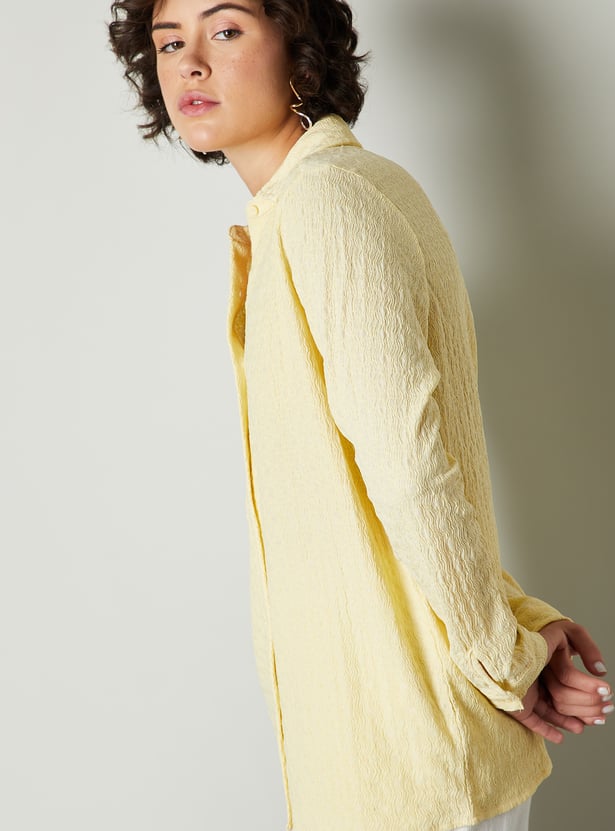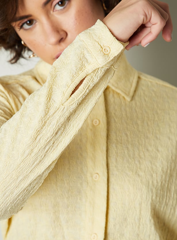 Upgrade your collection with this stylish shirt, featuring a textured design that adds depth to your look. With a spread collar, full sleeves, and a button placket, it’s perfect for a chic, sophisticated vibe.