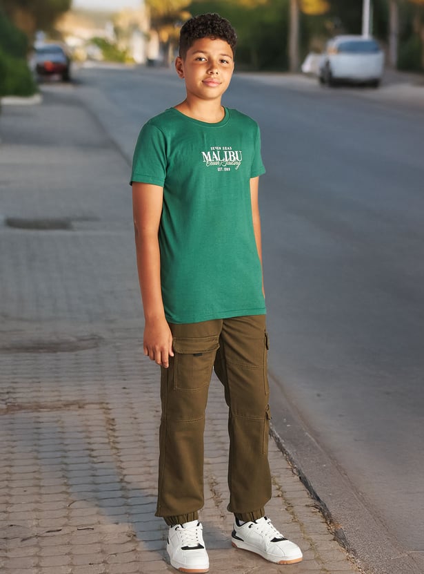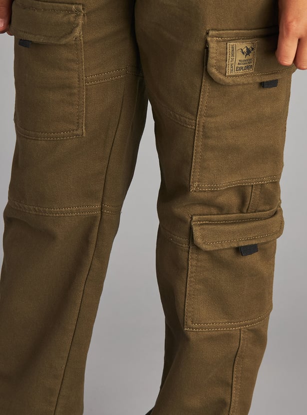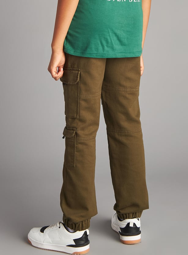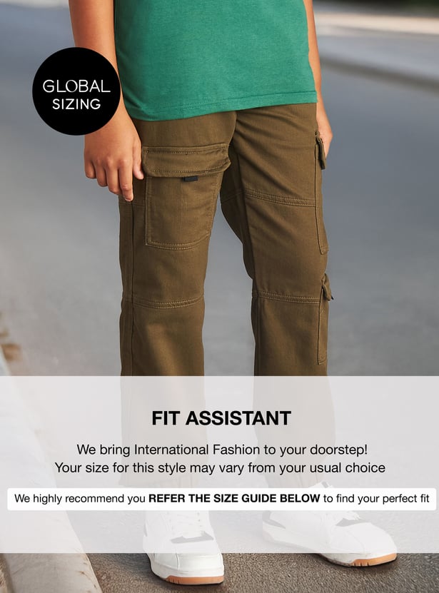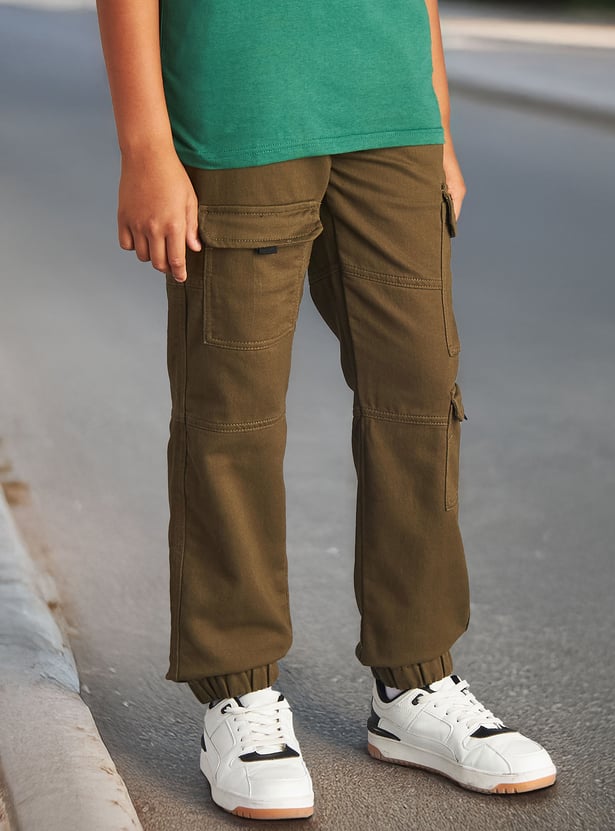 These cargo joggers are a must-have for your young boy's wardrobe. Designed with a solid tone and multiple pockets, they offer both sophistication and functionality. The versatile flair makes them easy to pair with various shirts.