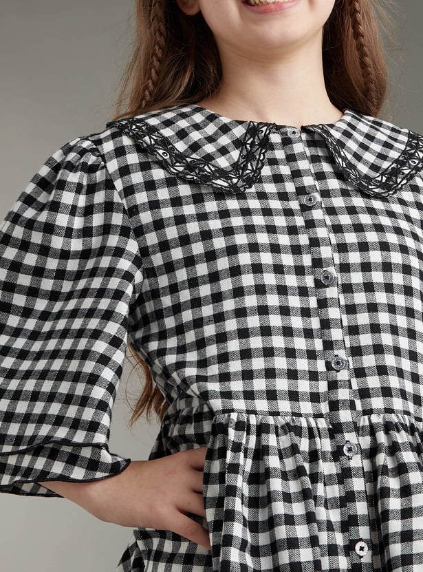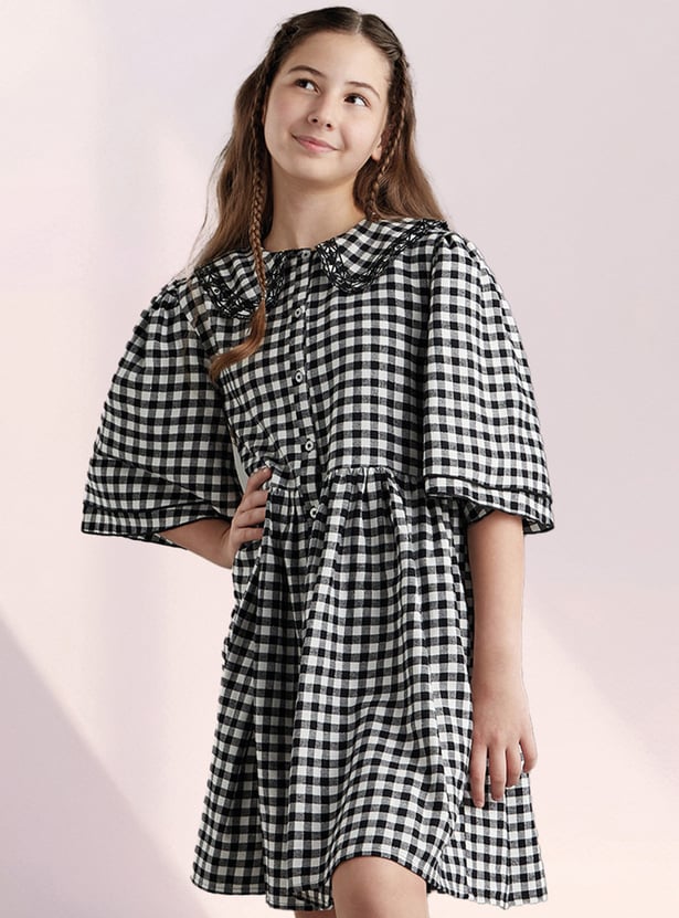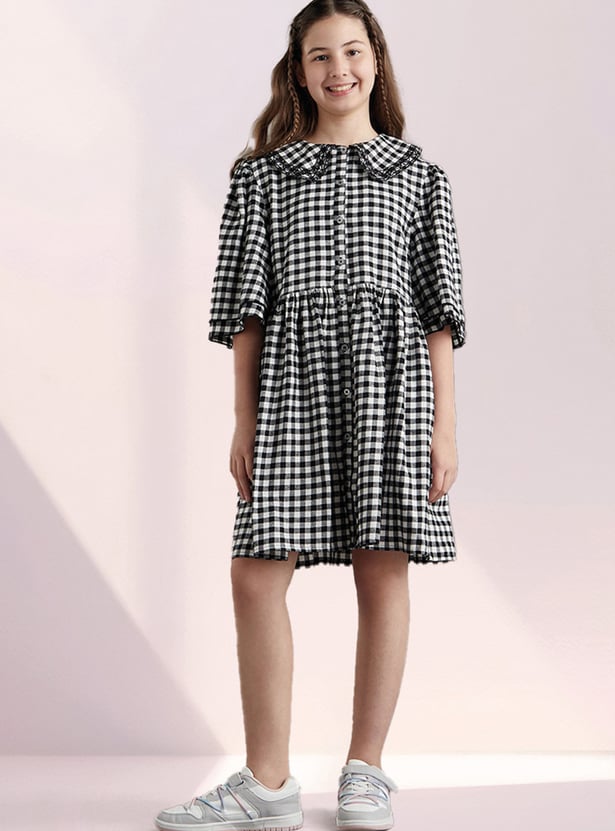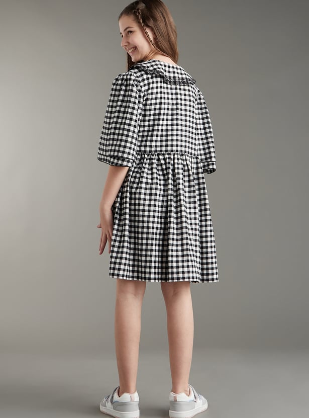 Girls Gingham Checked A-line Dress