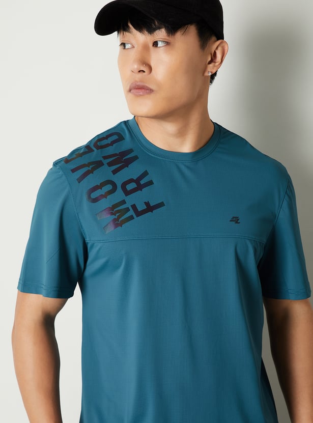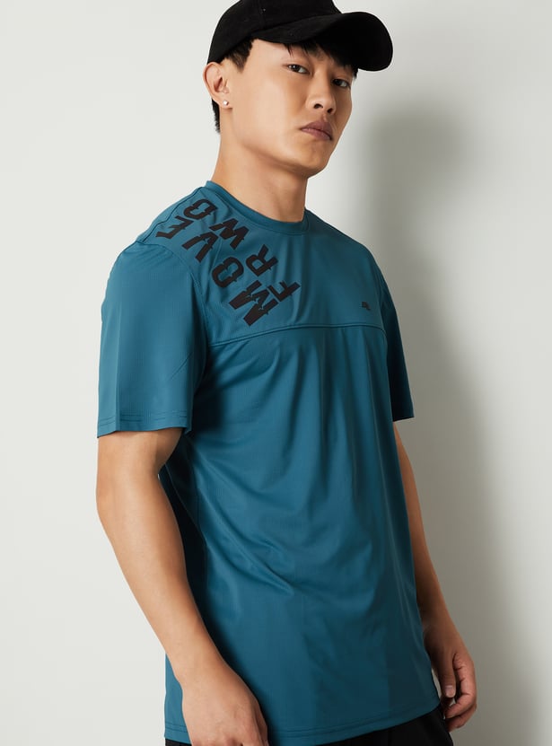 Gear up for your active days with this printed sports T-shirt. Designed with a crew neck and half sleeves, it offers a relaxed fit that moves with you, making it ideal for everything from workouts to weekend hangouts.