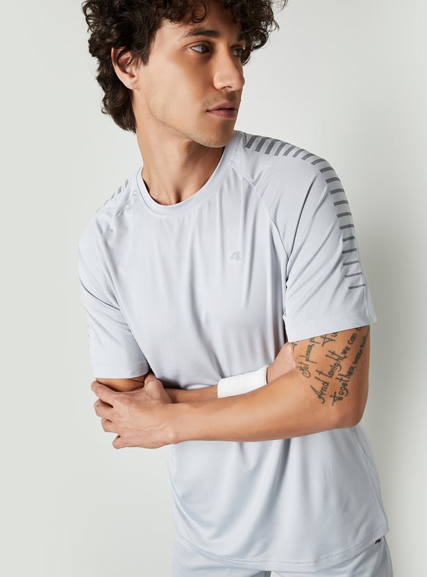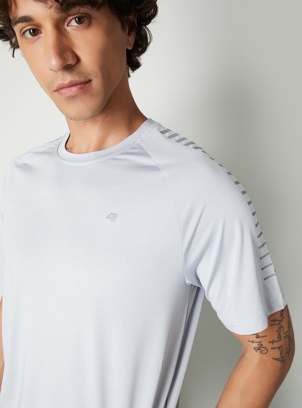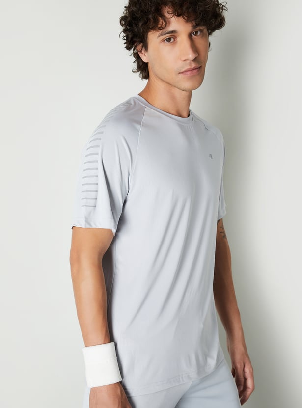 Stay ahead in style with this solid sports T-shirt with shoulder stripes, designed for active comfort and a sleek look. Featuring a classic crew neck and half sleeves, it’s perfect for workouts or casual outings.