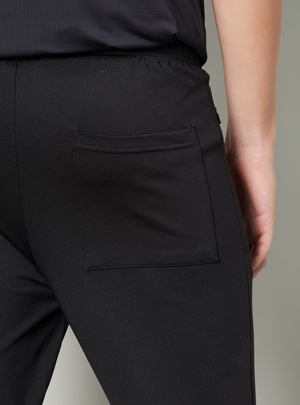 Elevate your comfort with these solid athleisure joggers, designed for both style and functionality. Featuring a drawstring closure and zip side pockets, they offer a sleek, secure fit perfect for workouts or casual outings.