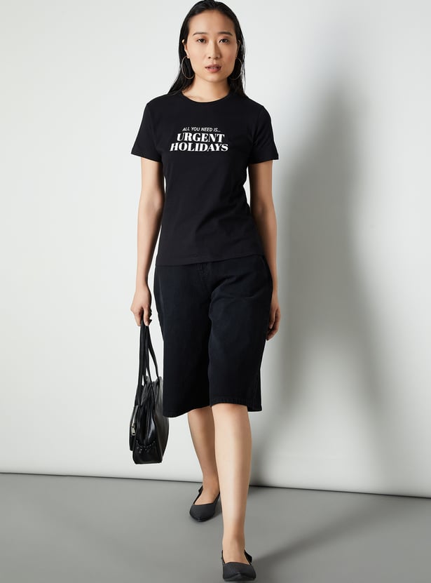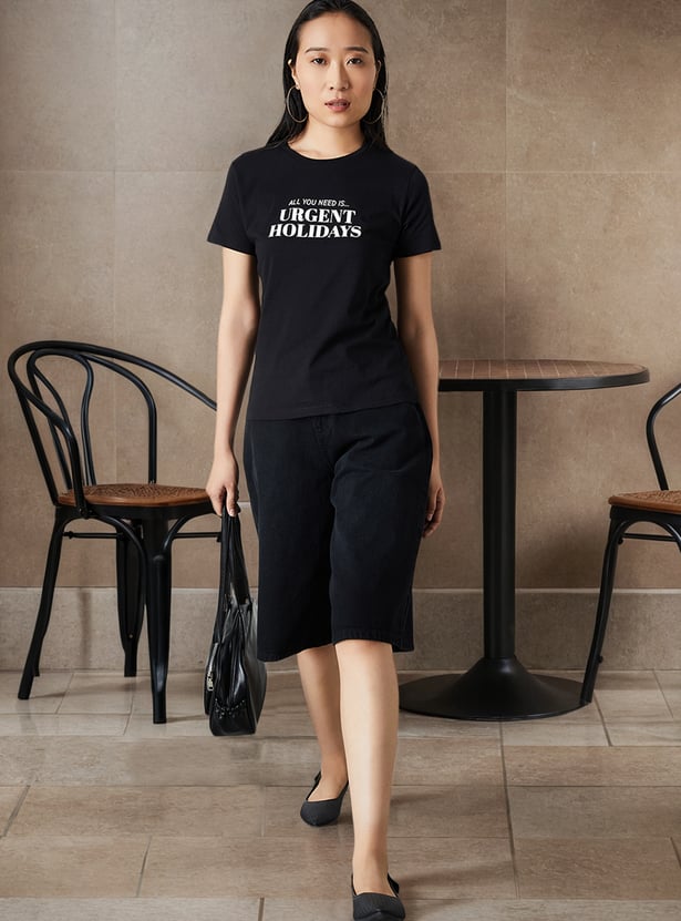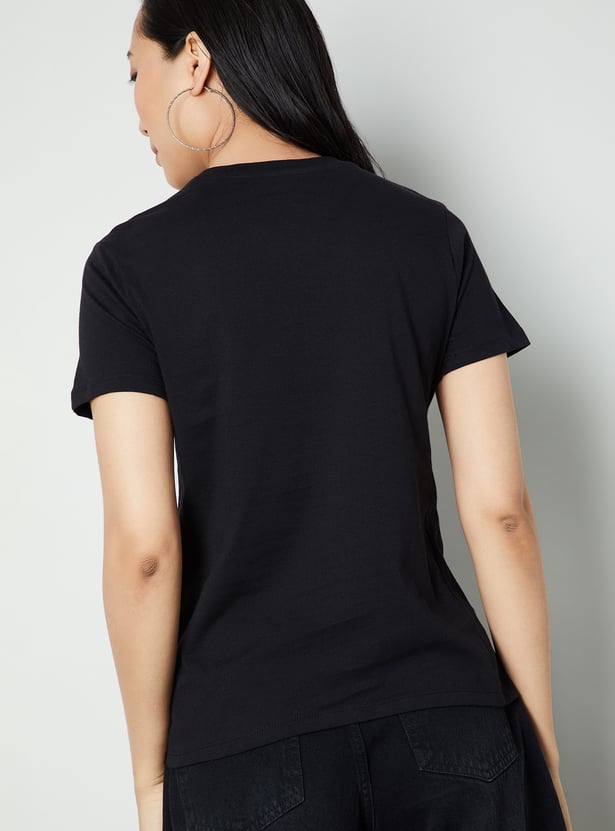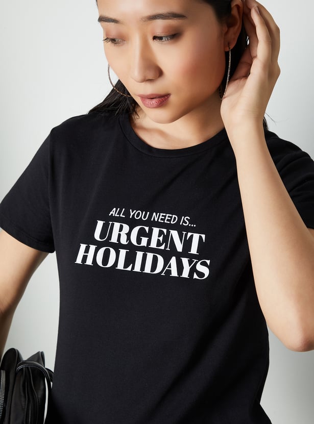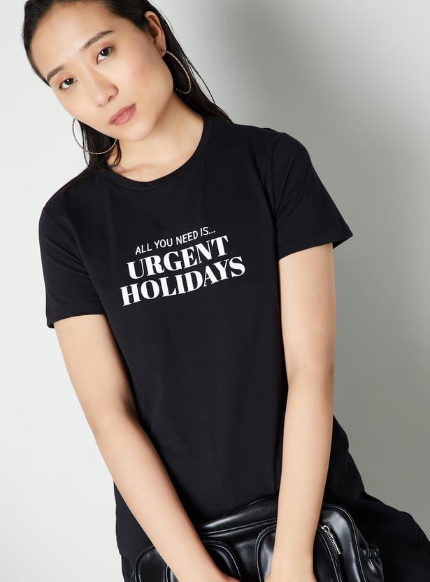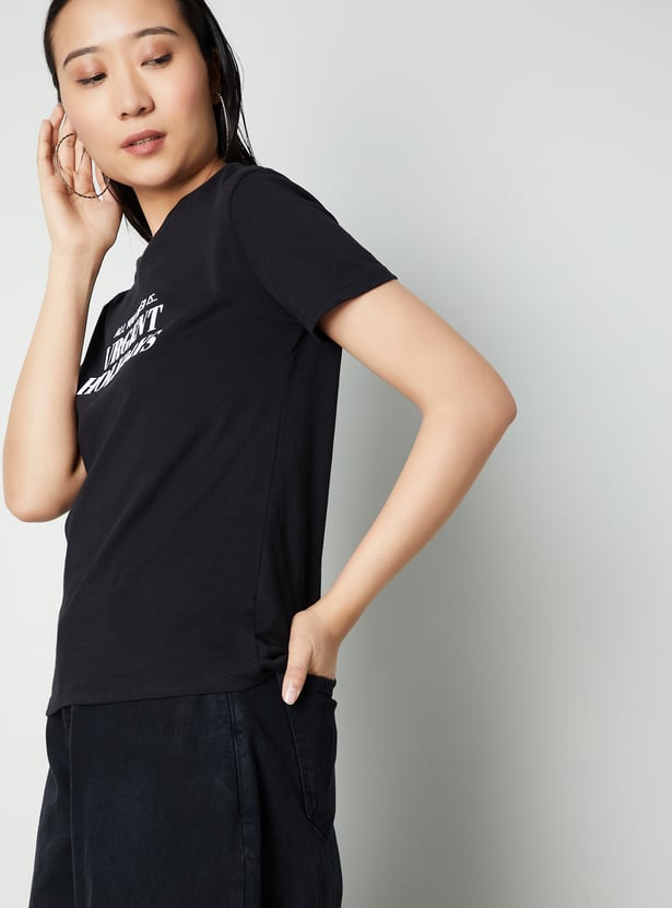 Add a pop of personality with this printed T-shirt, styled with a classic round neck and easy half sleeves for everyday wear. Its versatile design makes it a staple for effortless, casual dressing.