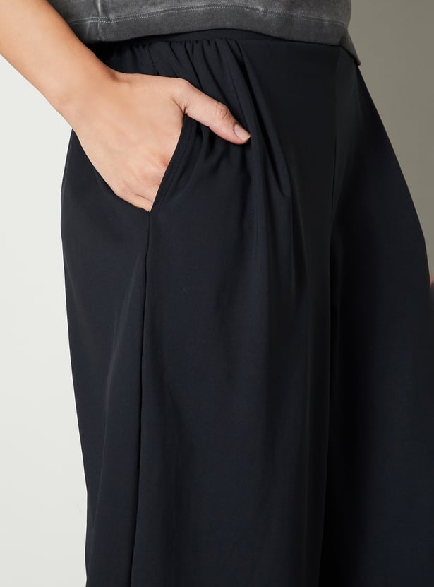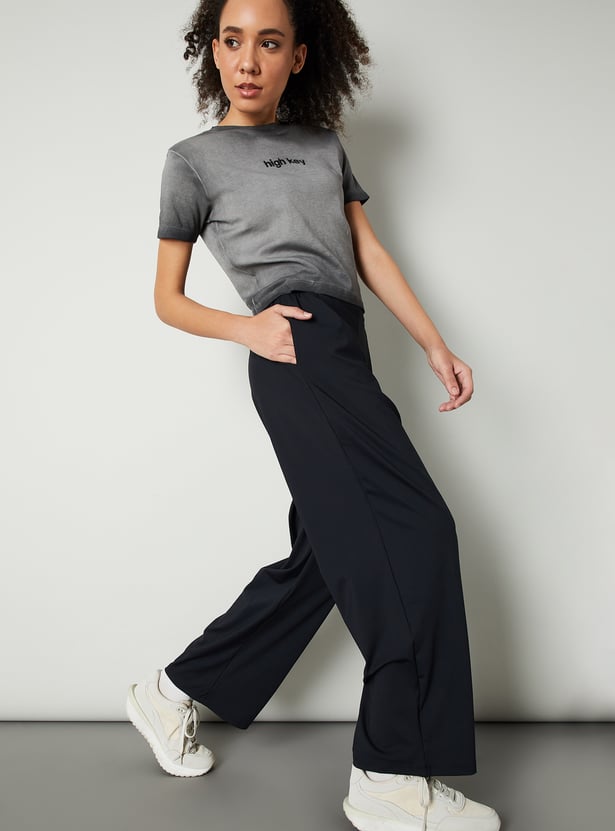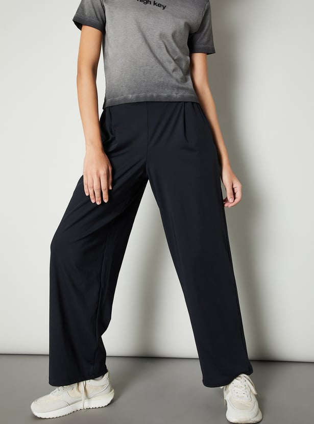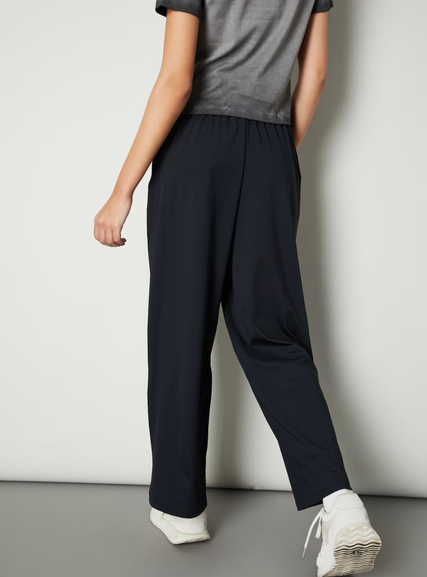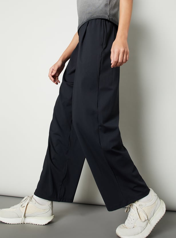 These solid track pants are designed for both comfort and style, featuring an elasticated waist for a secure fit and full-length coverage. The insert pockets add practicality.