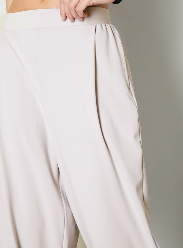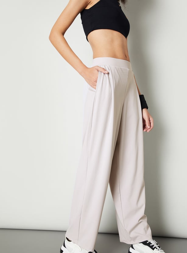 These solid track pants are designed for both comfort and style, featuring an elasticated waist for a secure fit and full-length coverage. The insert pockets add practicality.