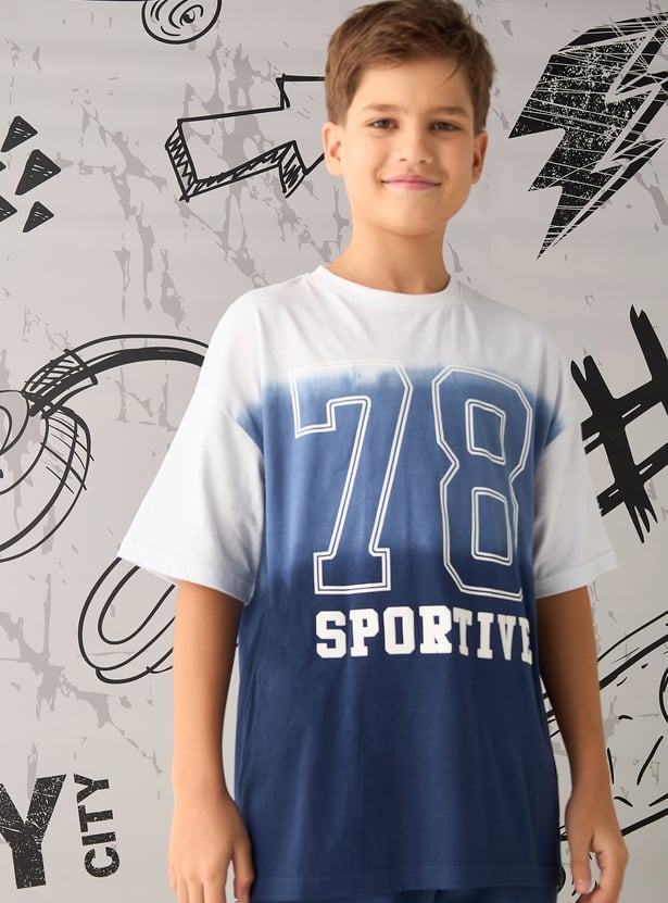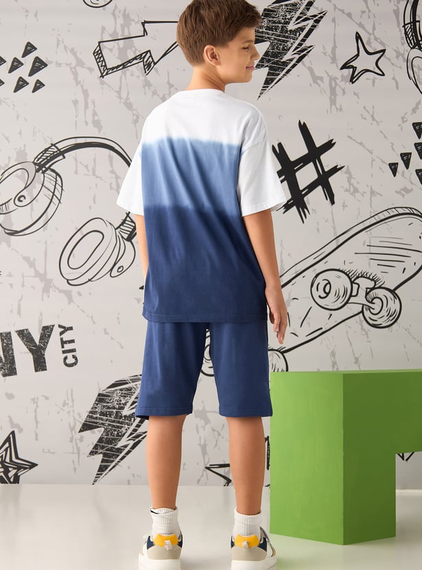 Perfect for your kid's active days, this set features a bold graphic T-shirt with a stylish dip-dye pattern and coordinating shorts, thoughtfully designed for both comfort and freedom of movement. The T-shirt boasts a classic crew neck and short sleeves, while the cosy shorts with a drawstring waist and side pockets add a practical touch to complete the look.