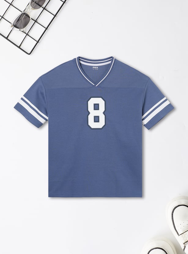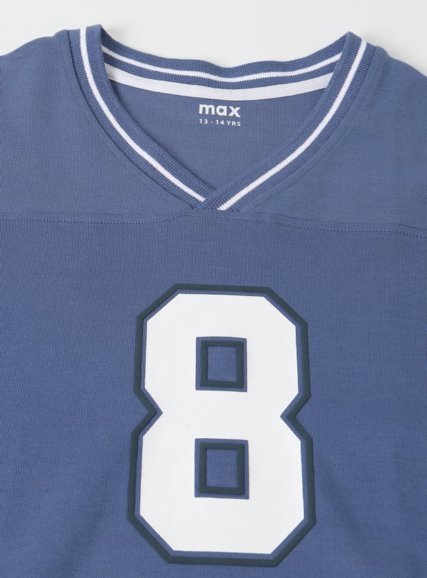 Refresh your casual look with this printed shorts set, featuring a t-shirt with a v-neck and half sleeves, paired with matching shorts designed with a drawstring closure.