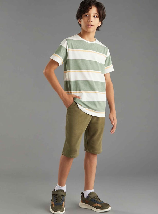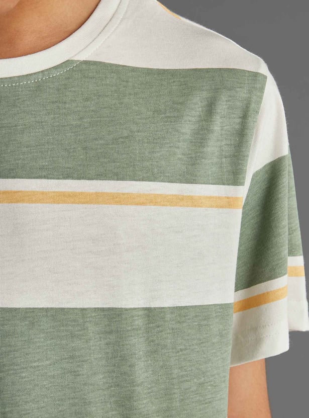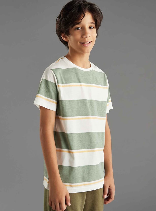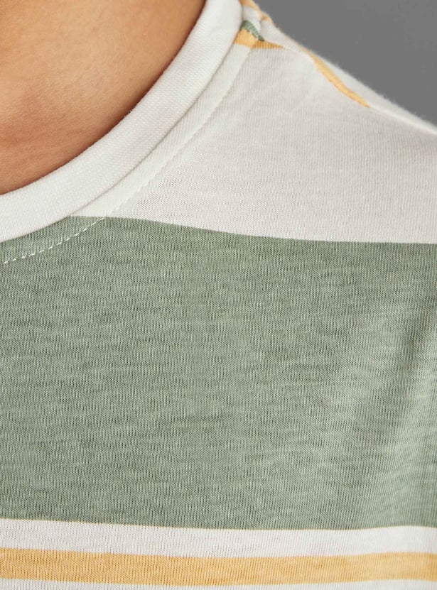 Keep it classic with this striped T-shirt, designed with a crew neck and half sleeves for everyday ease. The timeless stripes add a touch of effortless style, making it a versatile pick for any casual wardrobe.