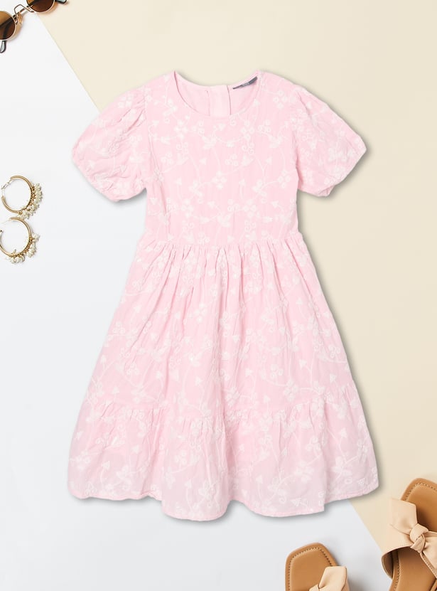 Girls Embroidered Fit and Flare Dress