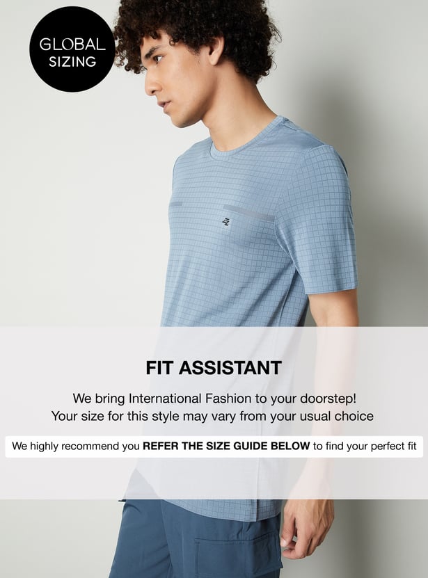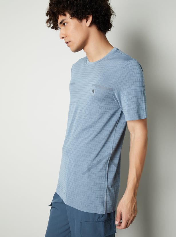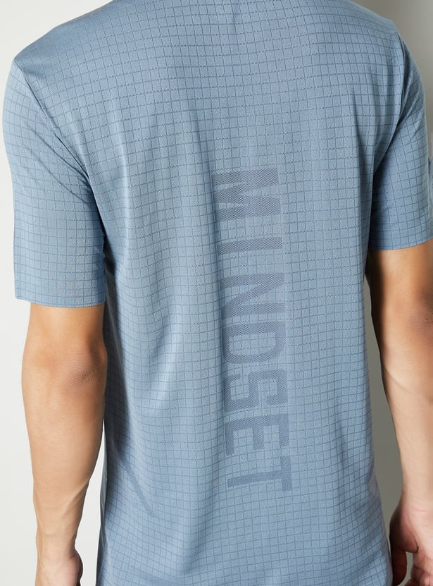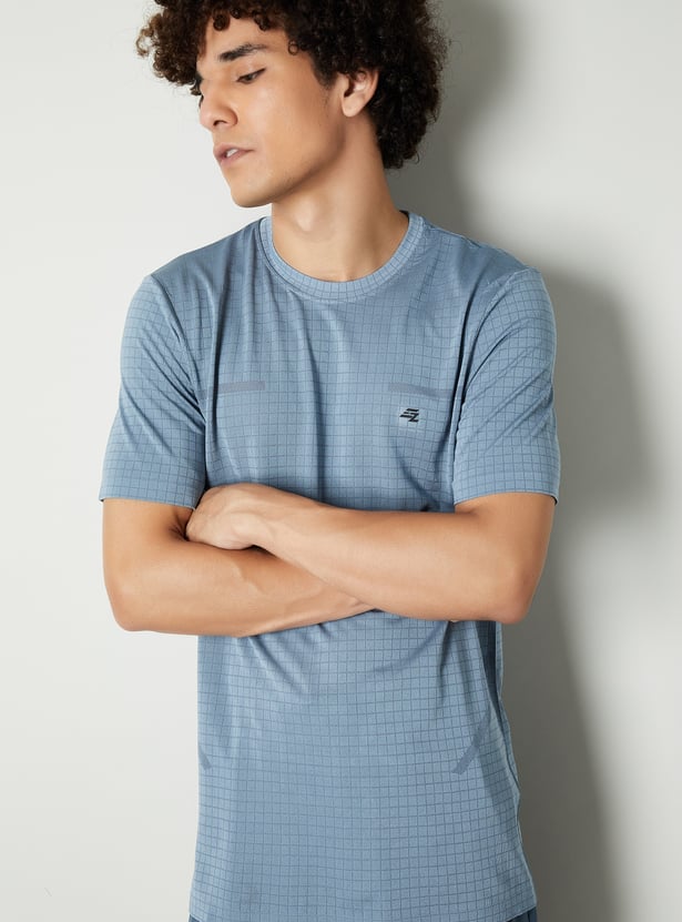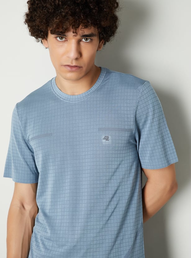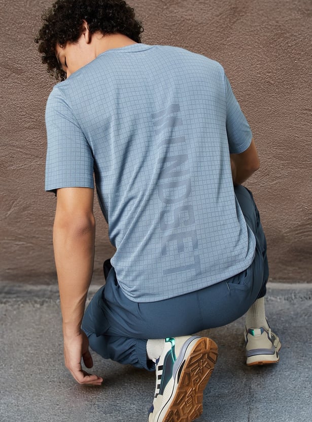 Look comfy and stylish through your toughest workouts in this T-shirt. The crew neck and half sleeves ensure a comfortable fit that’s perfect for any training session. The jacquard grid pattern adds texture and a subtle visual edge.