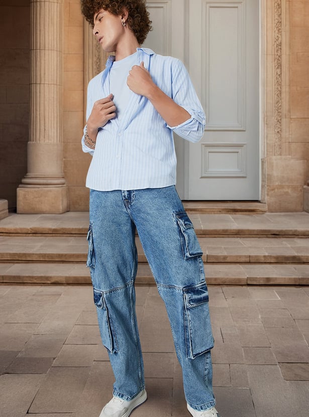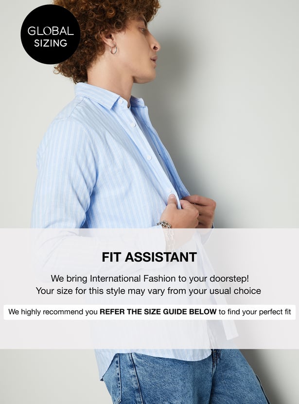 Tailored for a sleek silhouette, this striped slim fit shirt features a classic spread collar and full sleeves with buttoned cuffs. Crafted from crisp, breathable fabric, it’s the perfect balance of sharp style and all-day comfort.