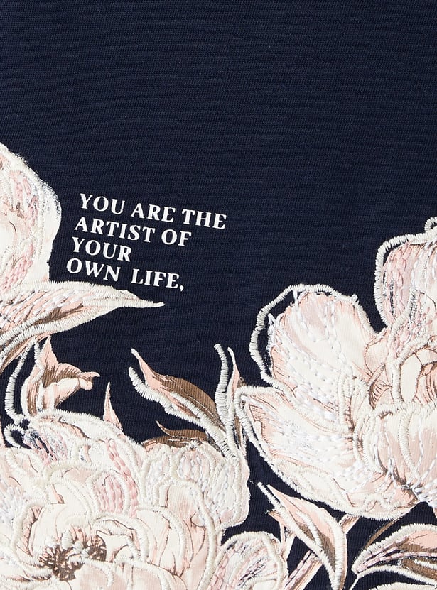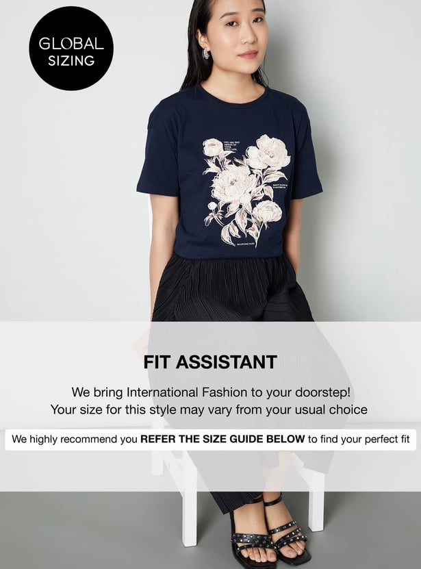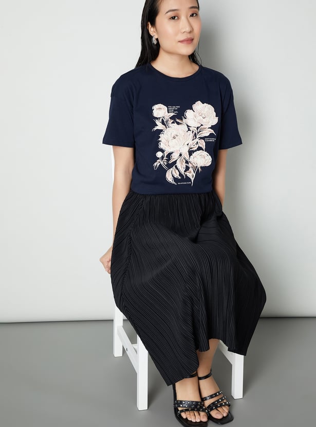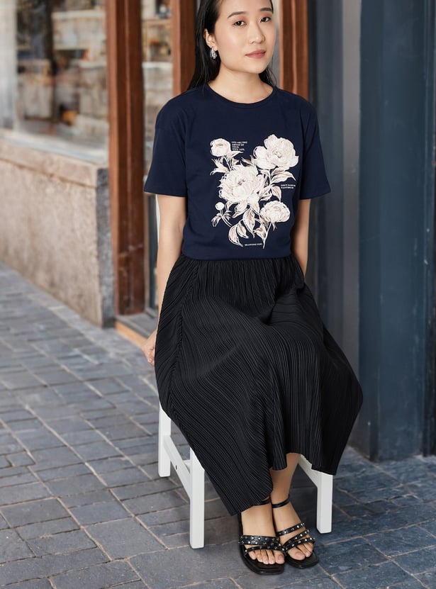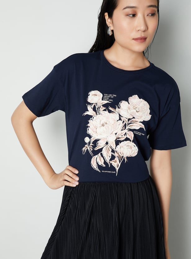 Freshen up your look with this floral print T-shirt, designed with a round neck and half sleeves for everyday comfort. The vibrant print brings a touch of charm to your casual style.