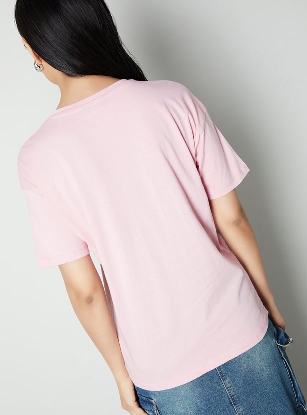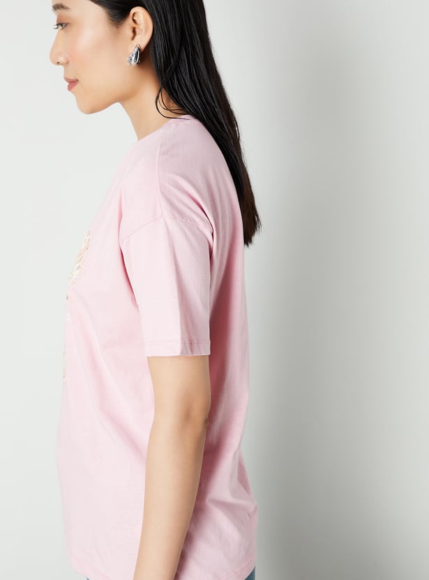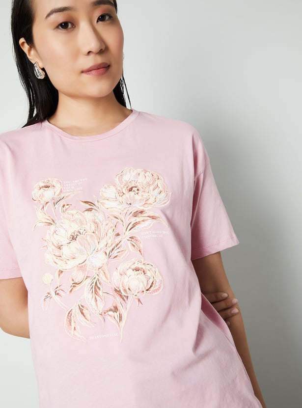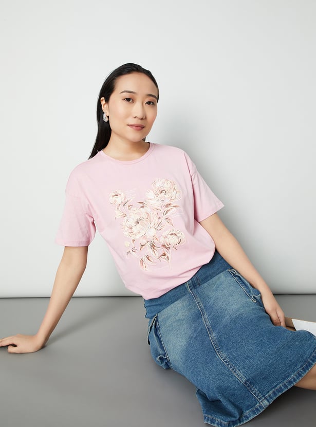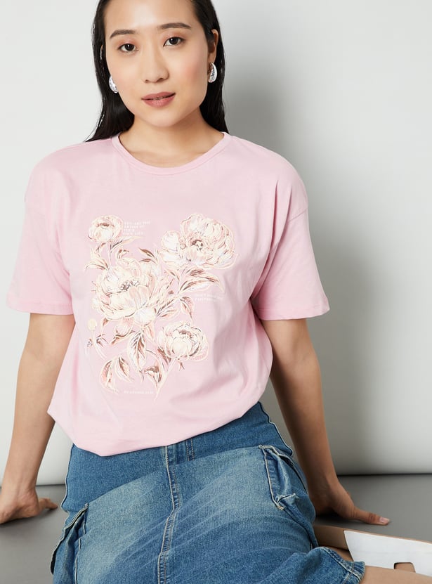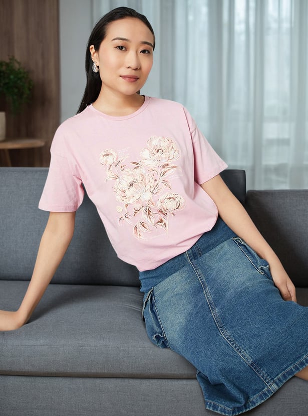 Freshen up your look with this floral print T-shirt, designed with a round neck and half sleeves for everyday comfort. The vibrant print brings a touch of charm to your casual style.