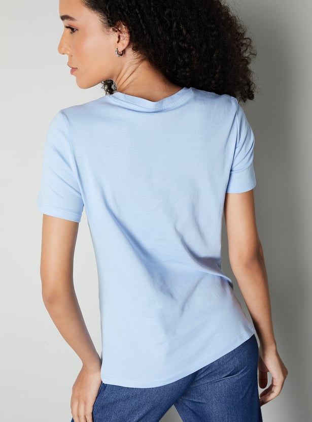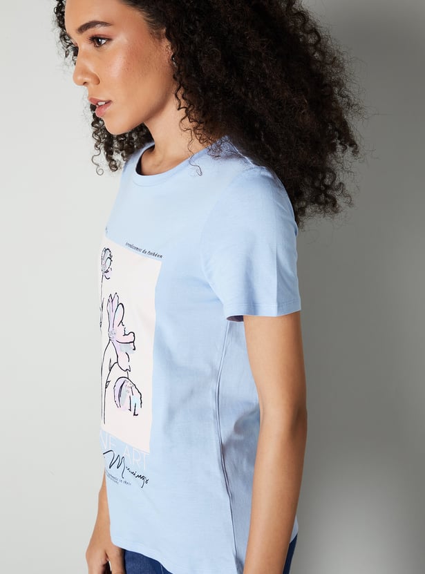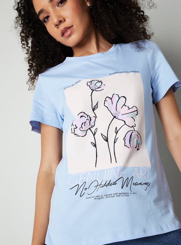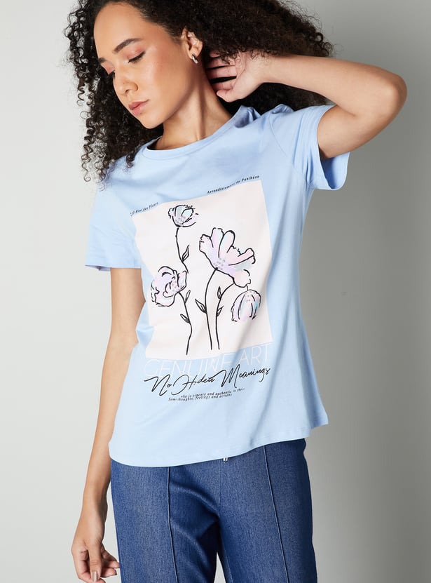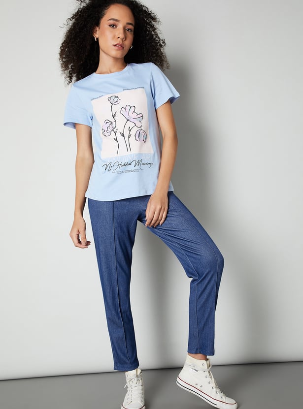 This printed t-shirt features a classic round neck, half sleeves, and a straight hem for a relaxed, comfortable fit. Perfect for adding a pop of style to your casual wardrobe, it pairs effortlessly with jeans or shorts for an easy-going look.