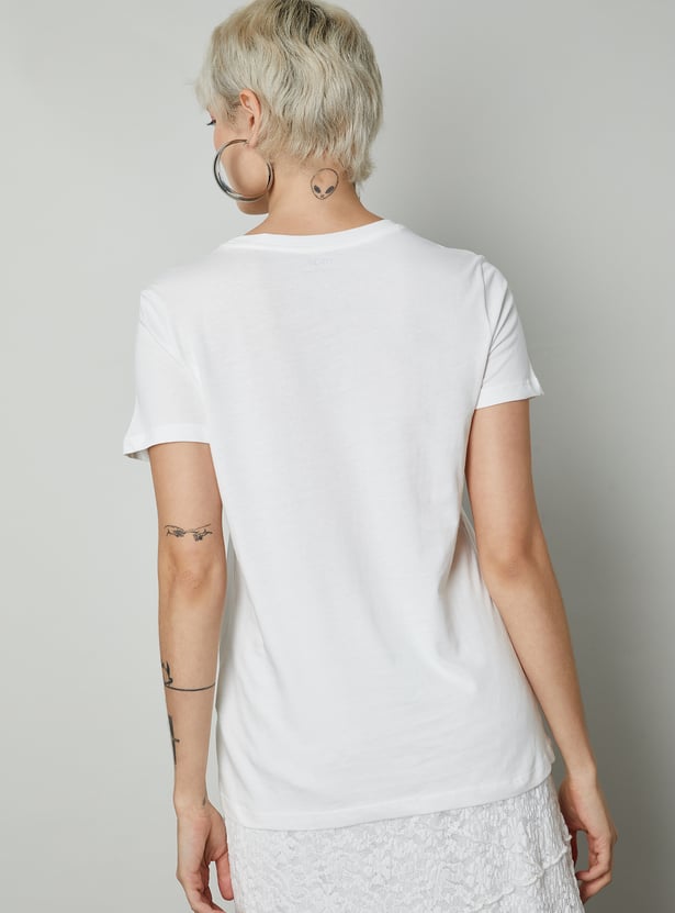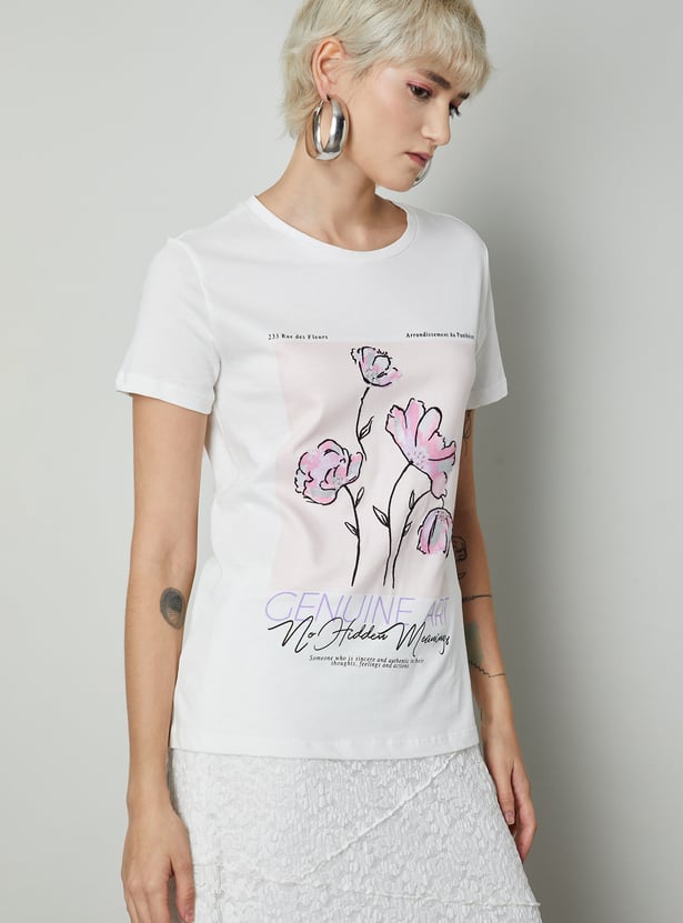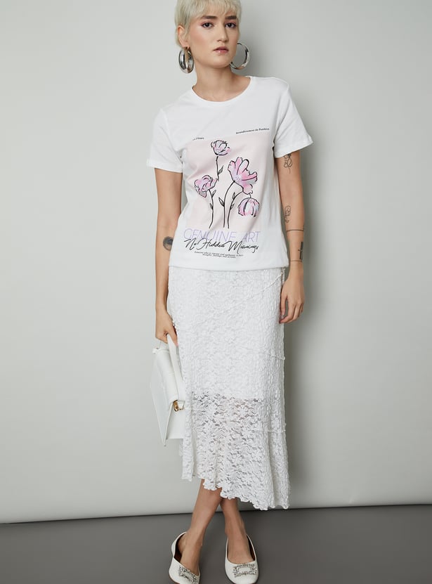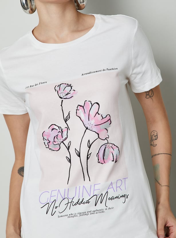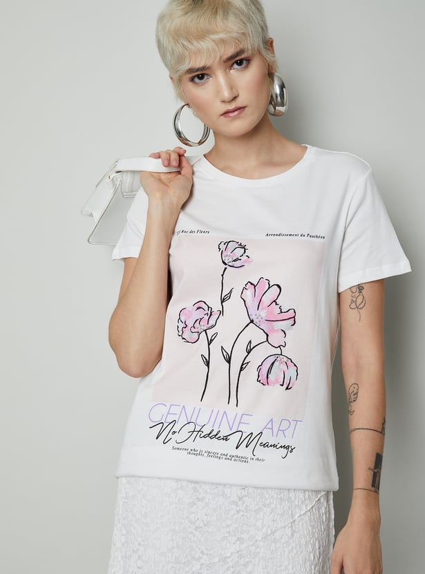 This printed t-shirt features a classic round neck, half sleeves, and a straight hem for a relaxed, comfortable fit. Perfect for adding a pop of style to your casual wardrobe, it pairs effortlessly with jeans or shorts for an easy-going look.