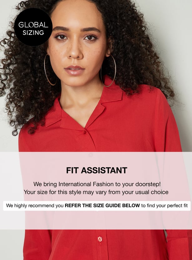 Elevate your wardrobe with this solid blouse, featuring a resort collar and button placket for a sophisticated yet relaxed look. The 3/4th sleeves with button cuffs add a stylish, refined touch to this versatile piece.