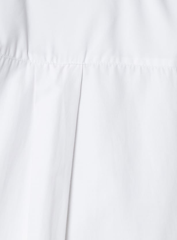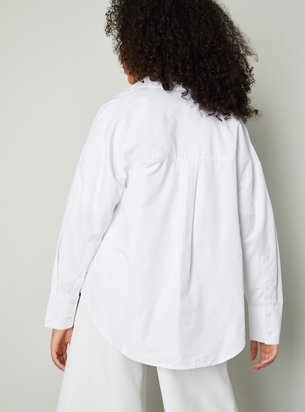 This solid oversized shirt combines relaxed comfort with classic style. Featuring a spread collar, button placket, and full sleeves with button cuffs, it offers a versatile silhouette perfect for layering or wearing solo.