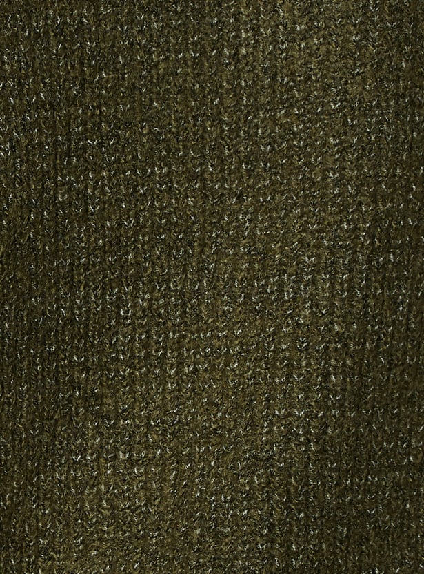 Upgrade your cosy collection with this sweater. The metallic knit construction with a crew neck, full sleeves, and ribbed trim lend a classic yet glammed-up look. The raglan sleeves with button details make this sweater stand out.
