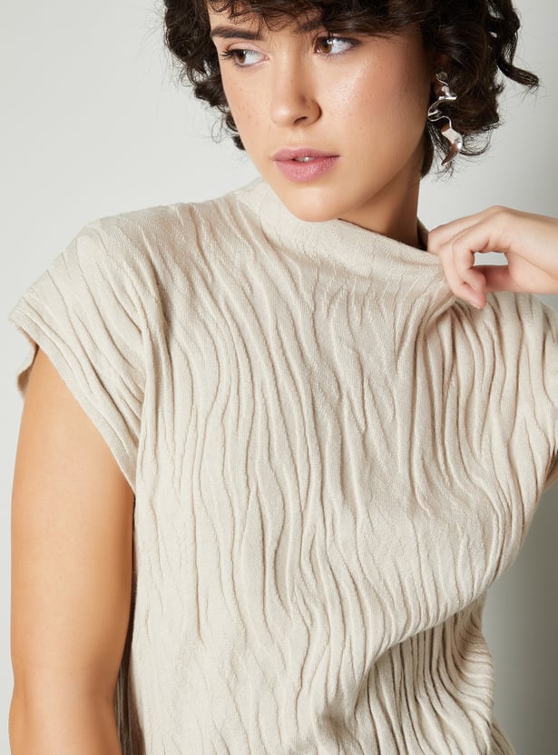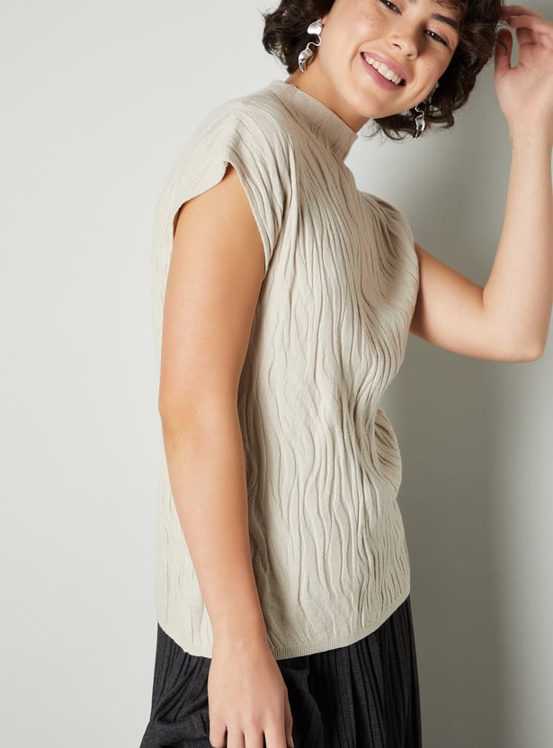 Women Embossed Knit Mock Neck Top