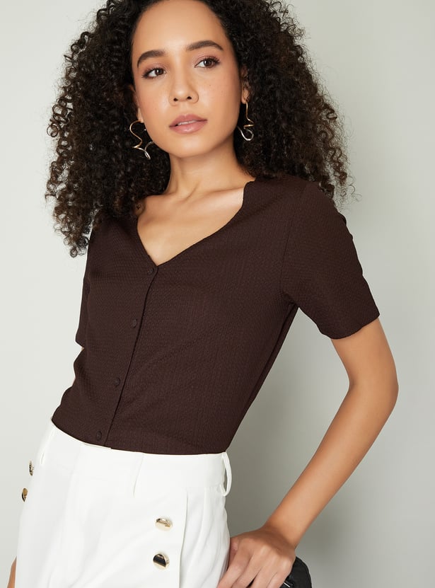 Elevate your everyday look with this knit top featuring a V-neck and button closure. The half sleeves offer a relaxed fit, making it perfect for all-day comfort.