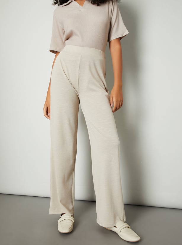 Women Textured Wide Leg Trousers