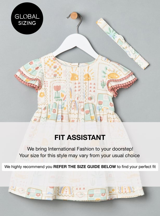 Girls Printed Dress with Matching Headband