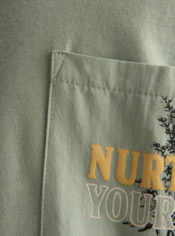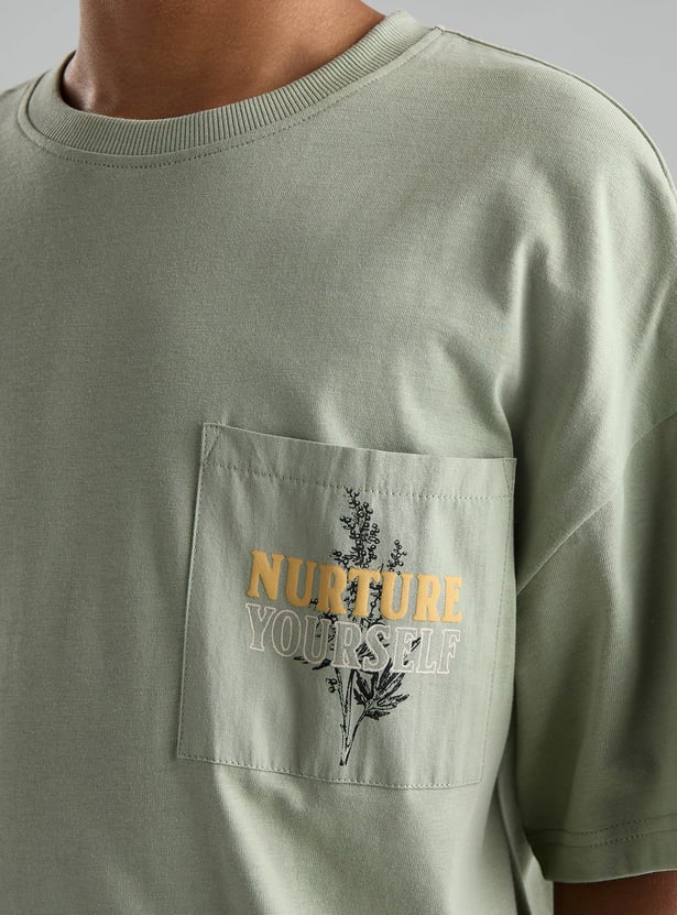 This T-shirt brings a fun twist to casual wear. With a crew neck, half sleeves, and a patch pocket on the front, it adds a stylish touch. The back print adds an extra flair, making it a standout piece for any day!