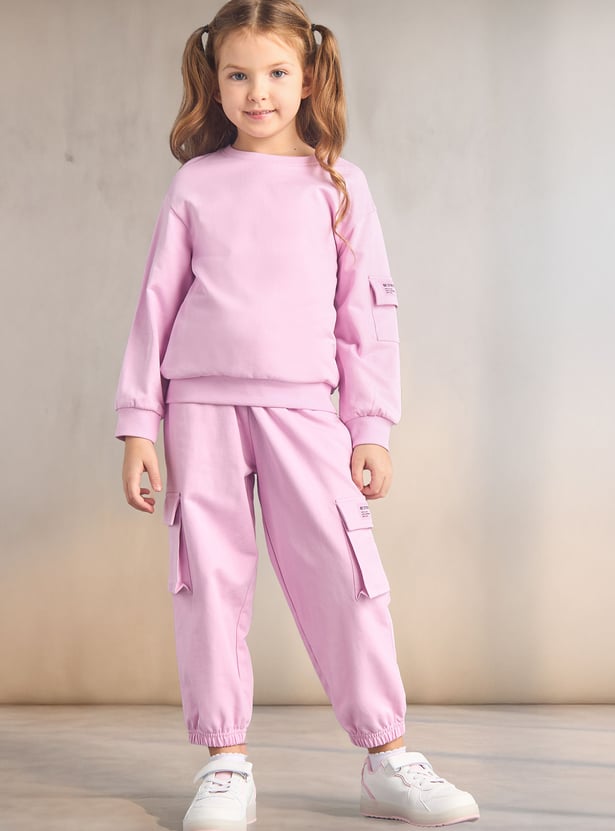 Girls Solid Cargo Joggers Set