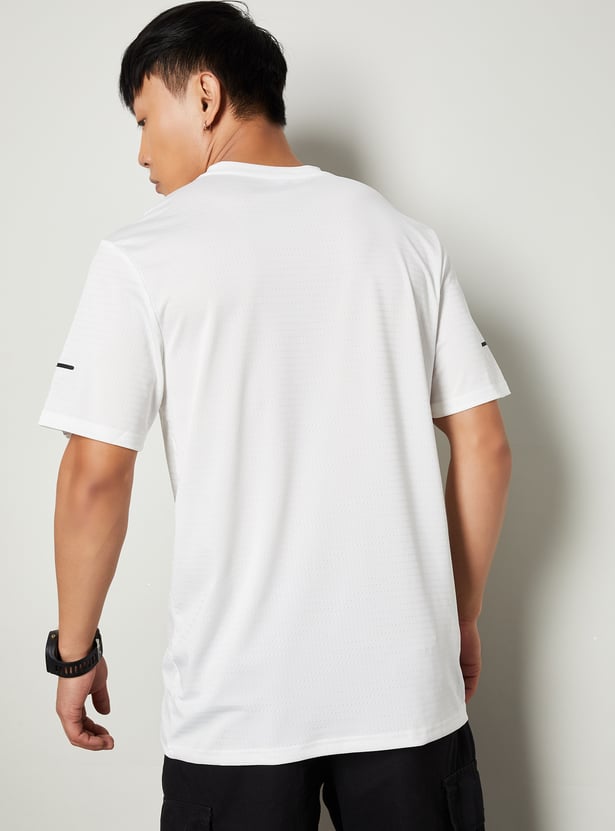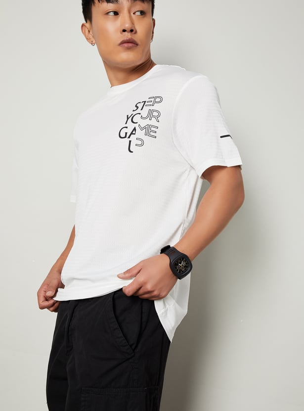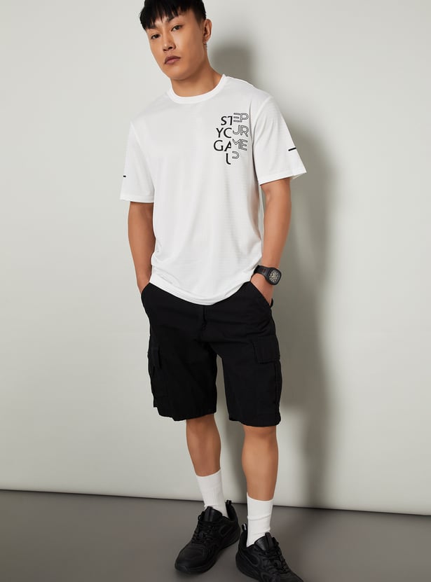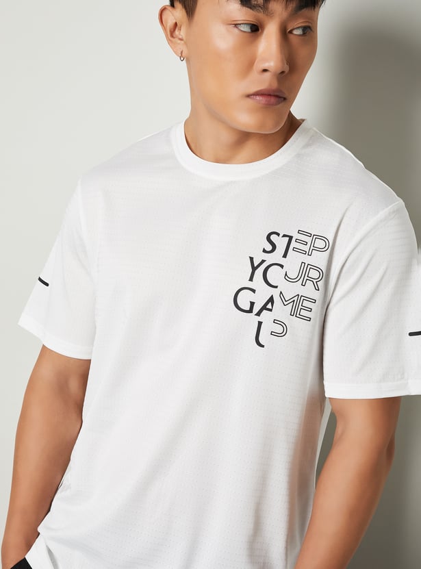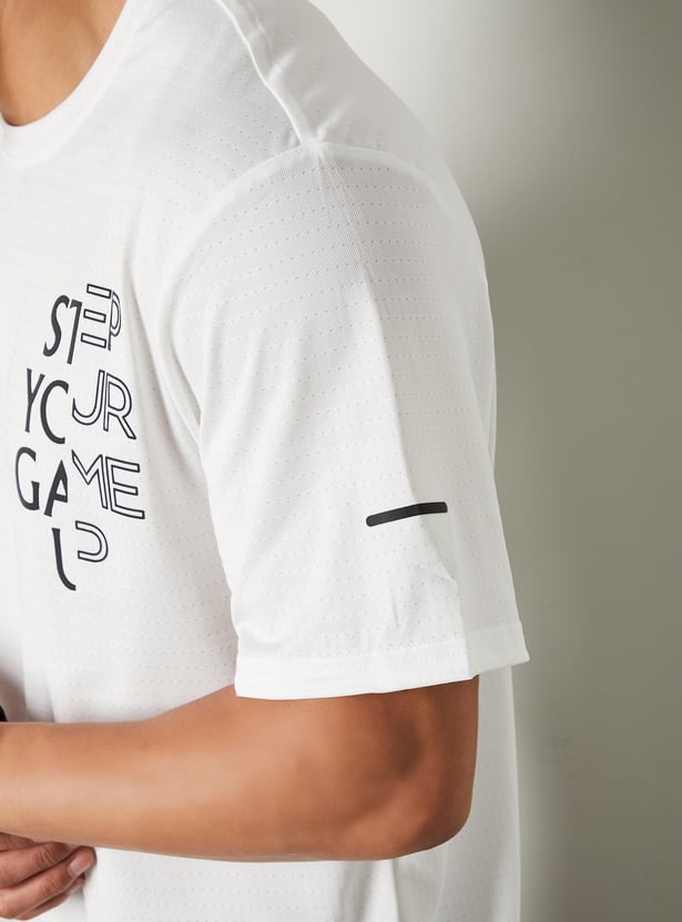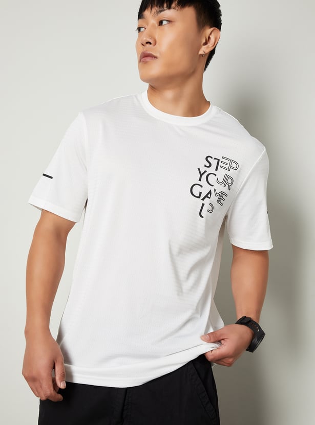 Stay cool and focused with this printed sports T-shirt, featuring a classic crew neck and half sleeves for optimal movement. Designed for comfort and breathability, it’s ideal for workouts or casual sporty style.