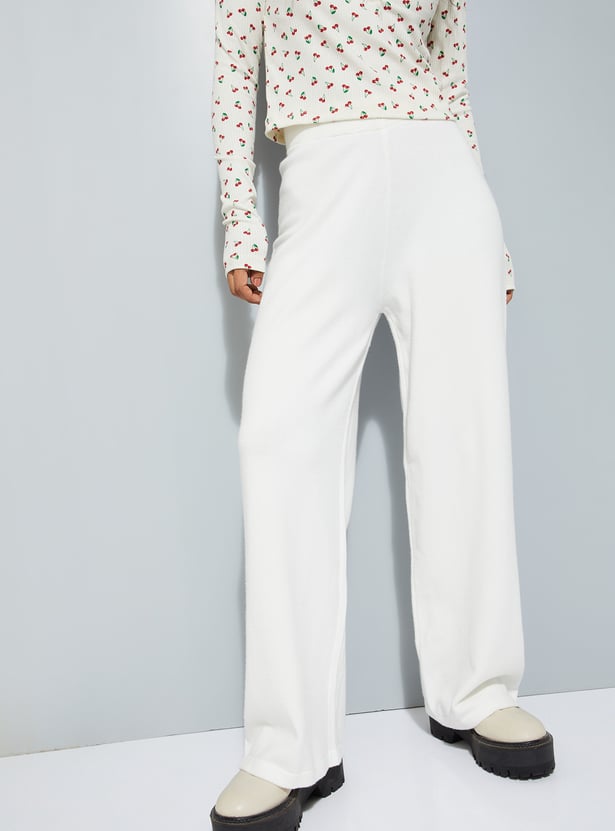 Stay comfortable and stylish with these solid wide-leg trousers, perfect for relaxed yet chic outfits. Featuring an elasticated waist for a secure and flexible fit, they offer both ease and elegance.