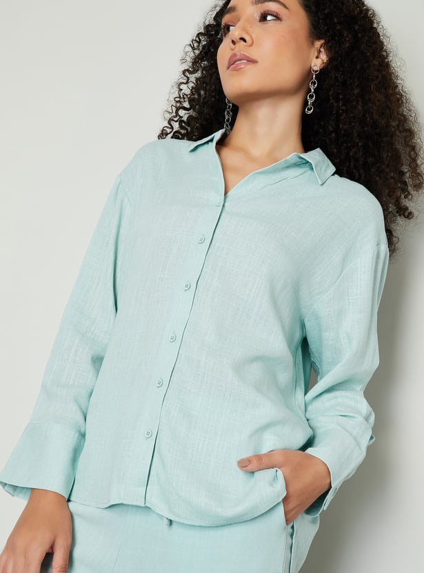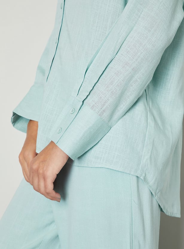 Women Textured Oversized Linen Shirt