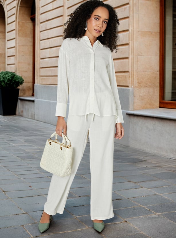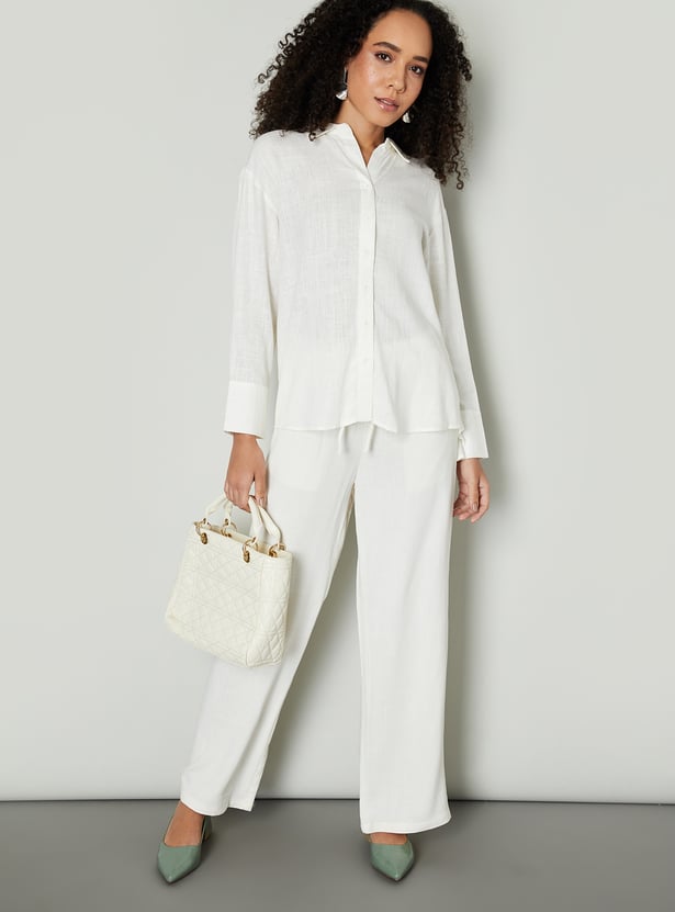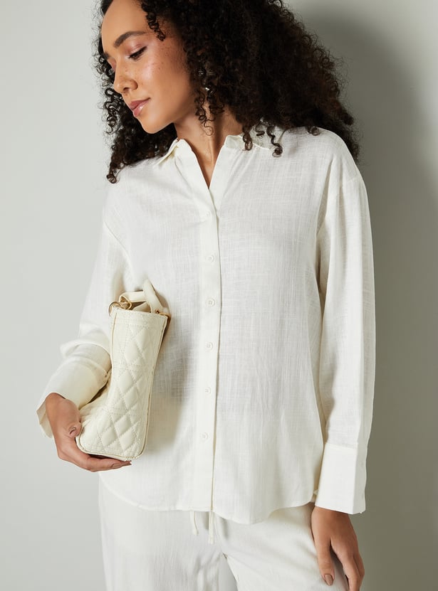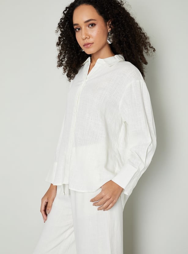 Women Textured Oversized Linen Shirt