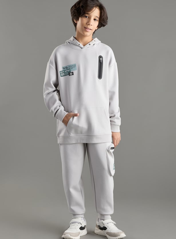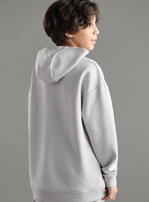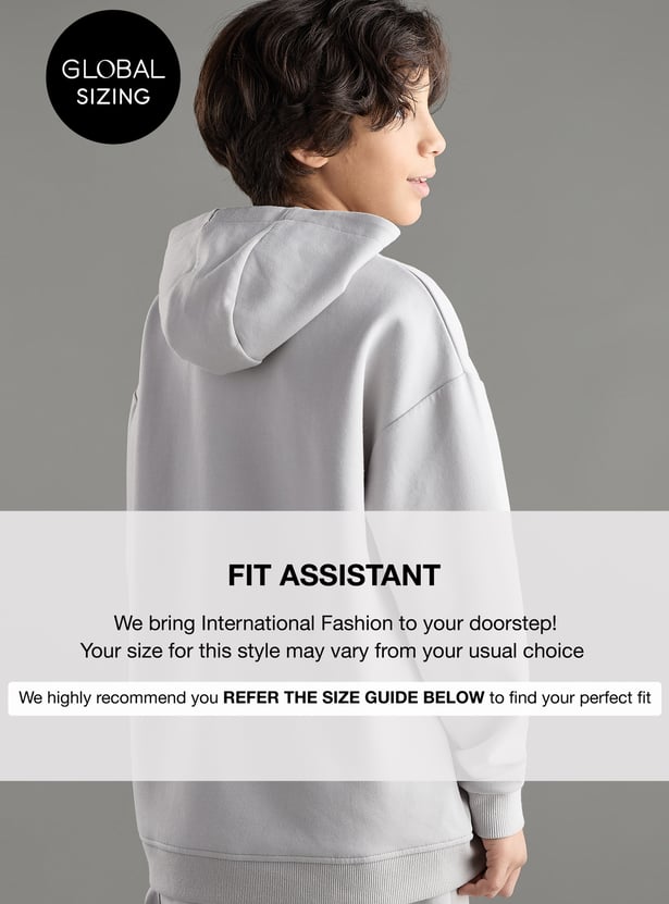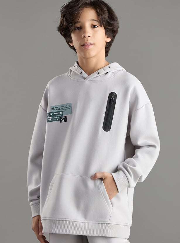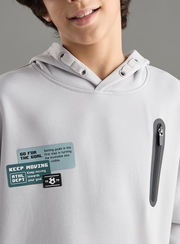 Stay warm and stylish with this sweatshirt. It features a printed design with a hooded neckline and full sleeves. Made from high-quality fabric, it ensures comfort and durability. Perfect for active boys, this is a must-have for any wardrobe.