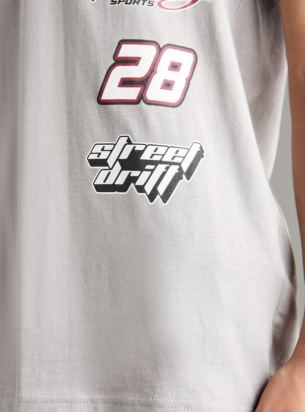 This printed t-shirt with a crew neck and half sleeves is the perfect blend of comfort and style, featuring a fun design that adds personality to your look.