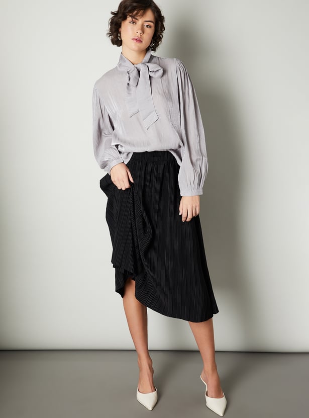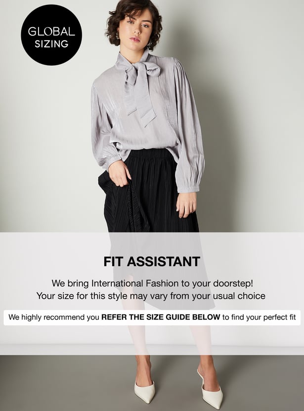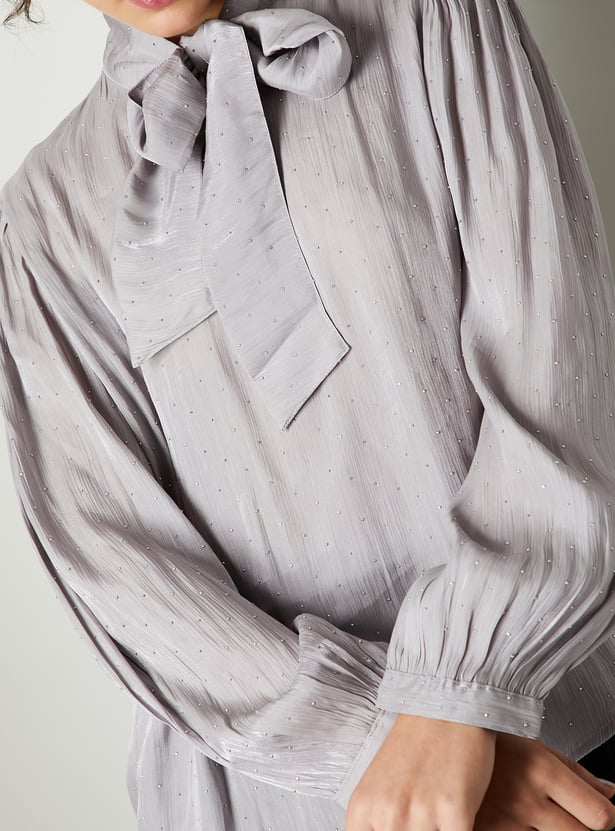 This top adds a touch of sparkle to your style. The tie-up neckline raises the style, while bishop sleeves hint at visual drama. The beaded detailing all over contributes to a glammed-up look.