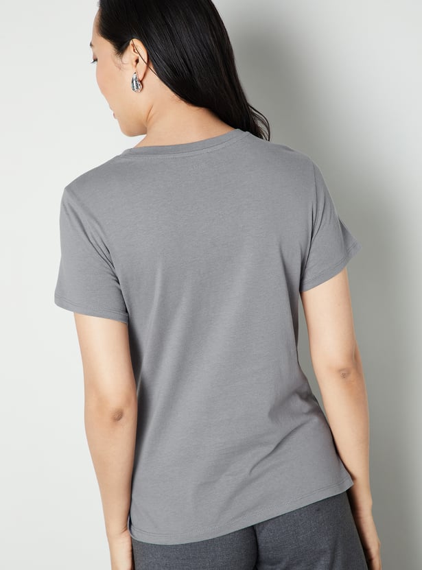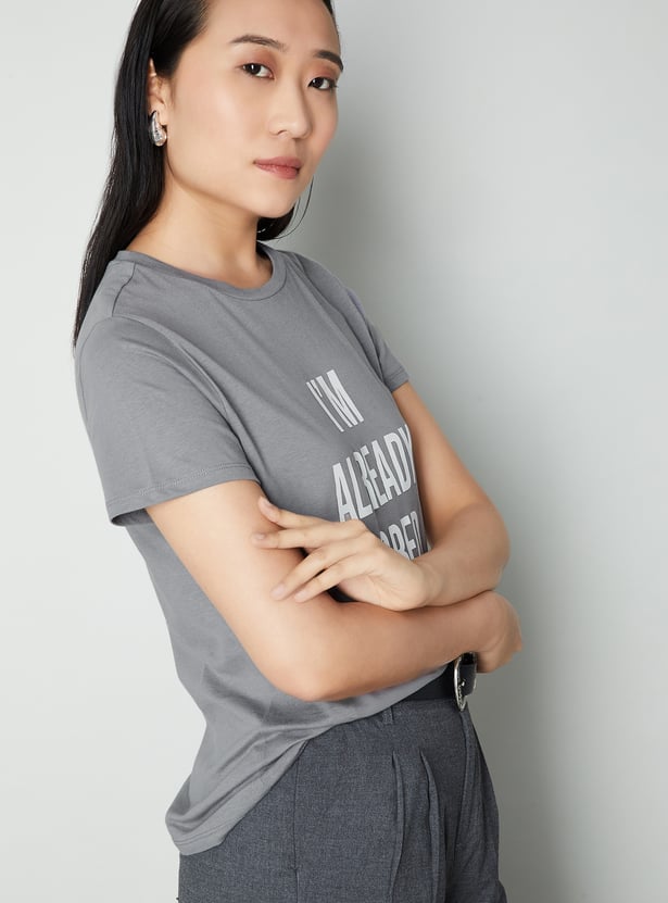 Add a pop of personality to your wardrobe with this eye-catching printed T-shirt. Featuring a classic round neck and half sleeves, it offers all-day comfort while making a style statement.